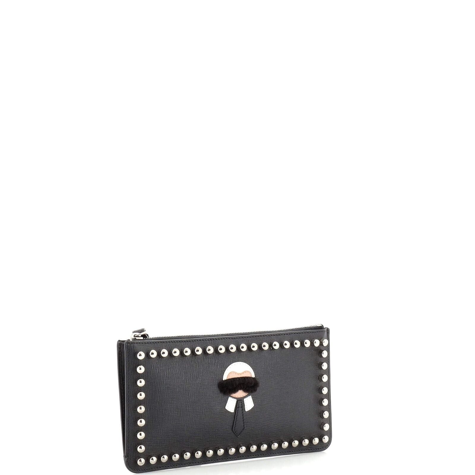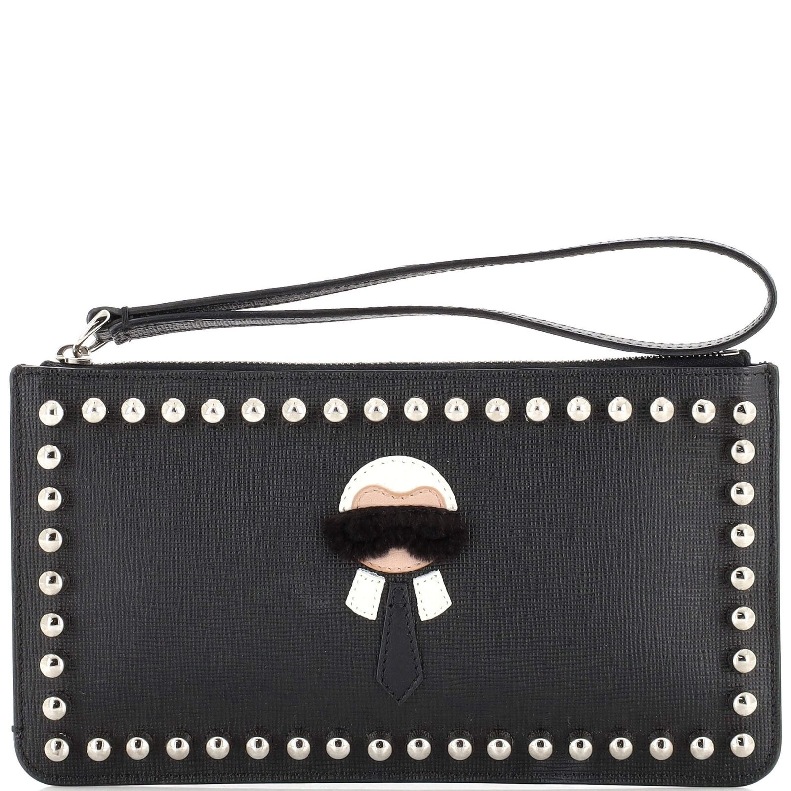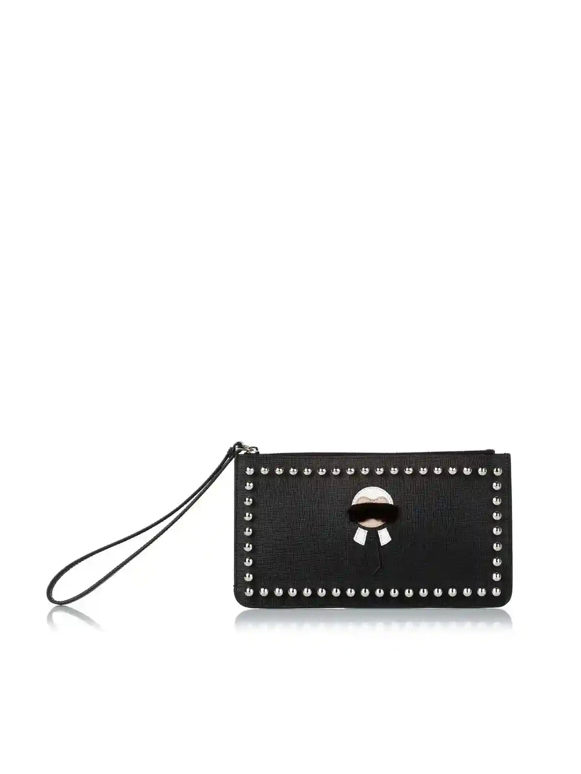 FENDI SAFFIANO LEATHER KARLITO CLUTCH BAG WRISTLET