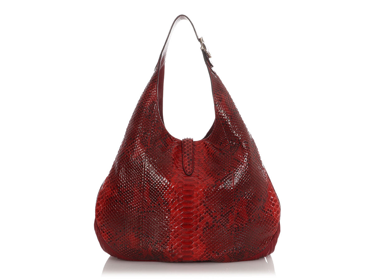 Gucci Red Python Nouveau Ring Jackie Hobo