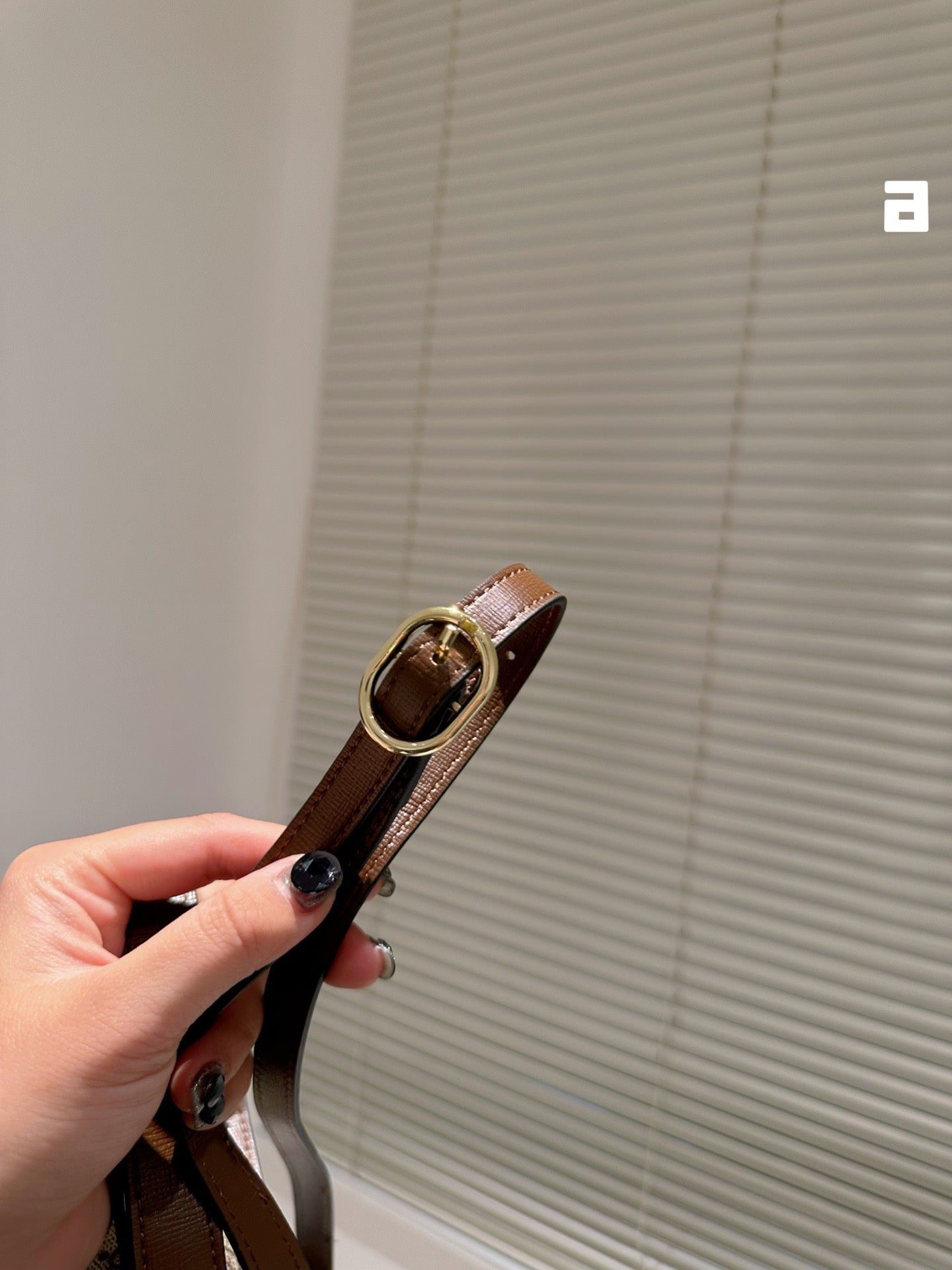 - Gold-toned hardware