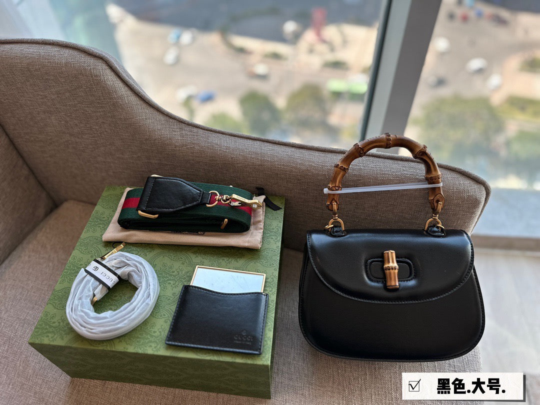 GC570 Gucci Bamboo 1947 Small Top Handle Bag / 8.3"W x 6"H x 2.75"D