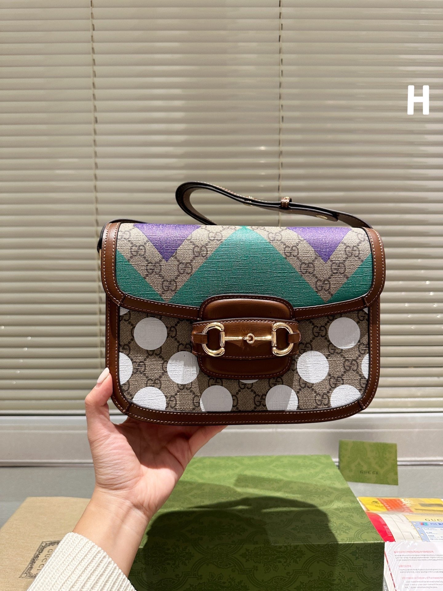 GC594 Gucci Horsebit 1955 Shoulder Bag / 9.8"W x 7"H x 3.1"D