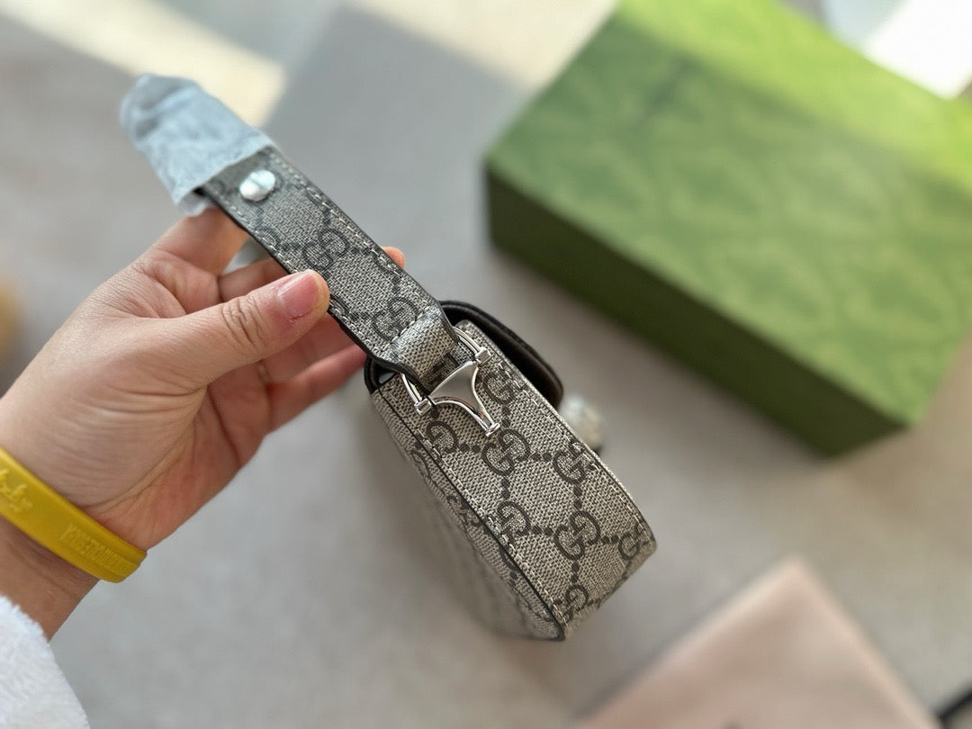 GC600 Gucci Horsebit 1955 Small Shoulder Bag / 10.4"W x 6.7-4.1"H x 3.1-1.6"D