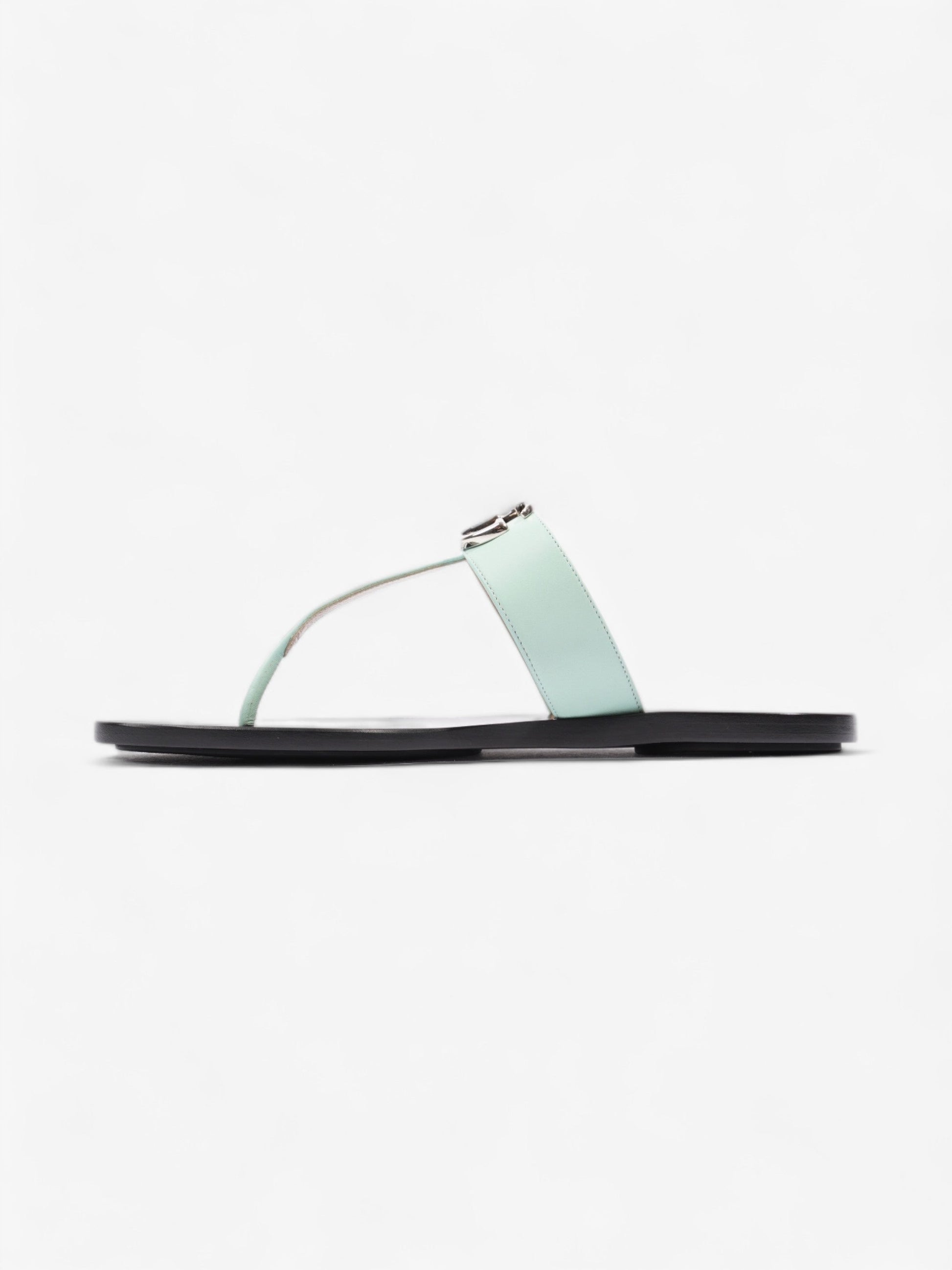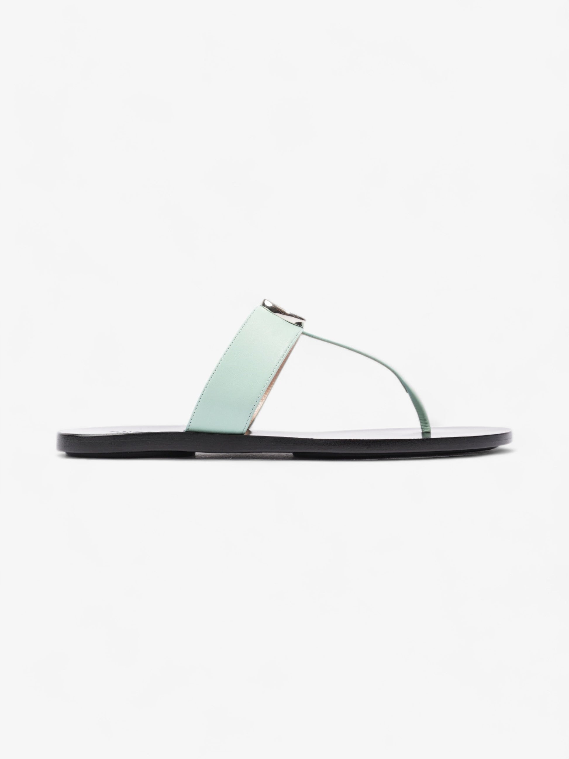 Gucci GG Marmont Thong Sandals Turquoise / Black Calfskin Leather EU 39.5 UK 6.5
