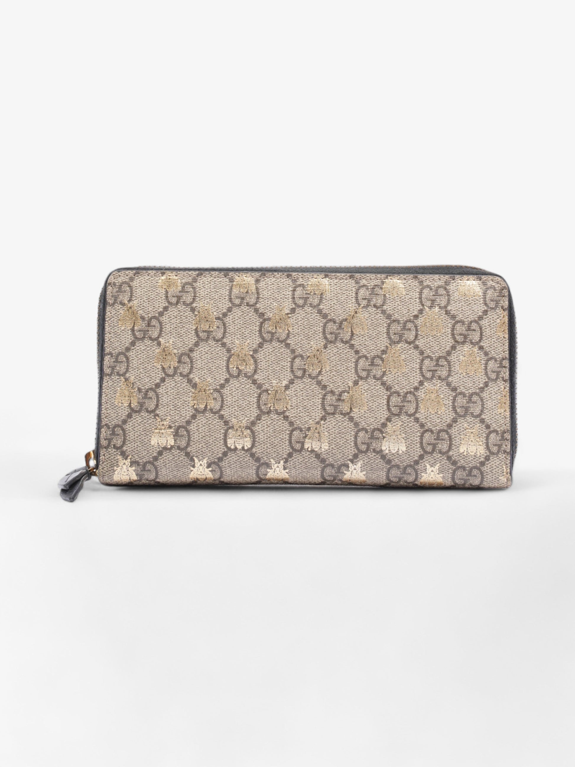 Gucci GG Supreme Zip Around Wallet Supreme / Gold Coated Canvas