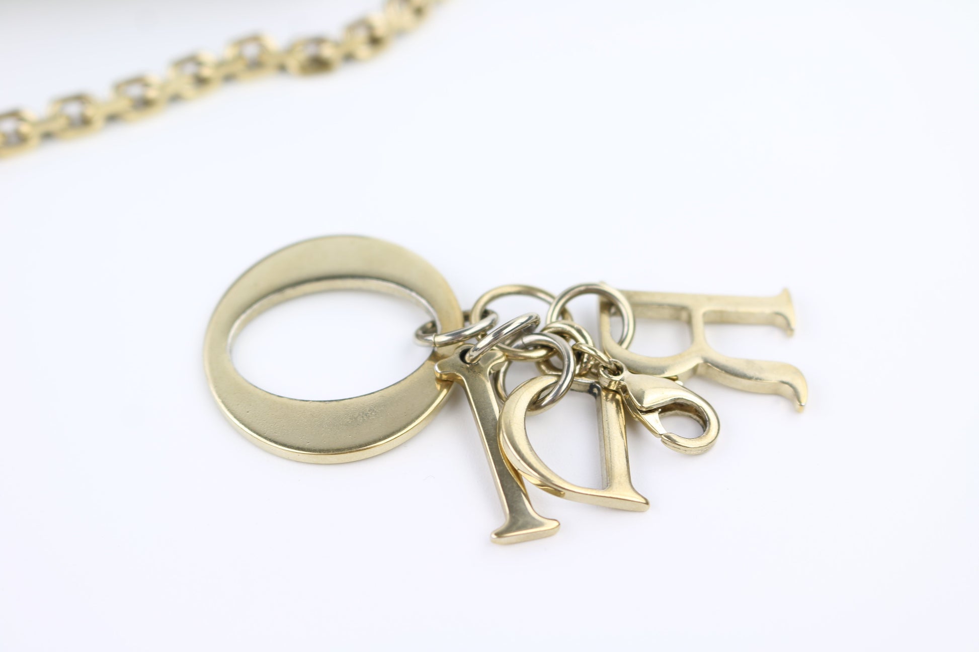 Dior Gold Metallic Calfskin Micro-Cannage Lady Dior Croisiere Chain Wallet with gold hardware. In fair condition. Heavy discoloration/wear to corners/edges. Hardware shows tarnish/plating loss. Interior is overall clean. No rips, tears or odors. Please see photos with zoom for detail.
