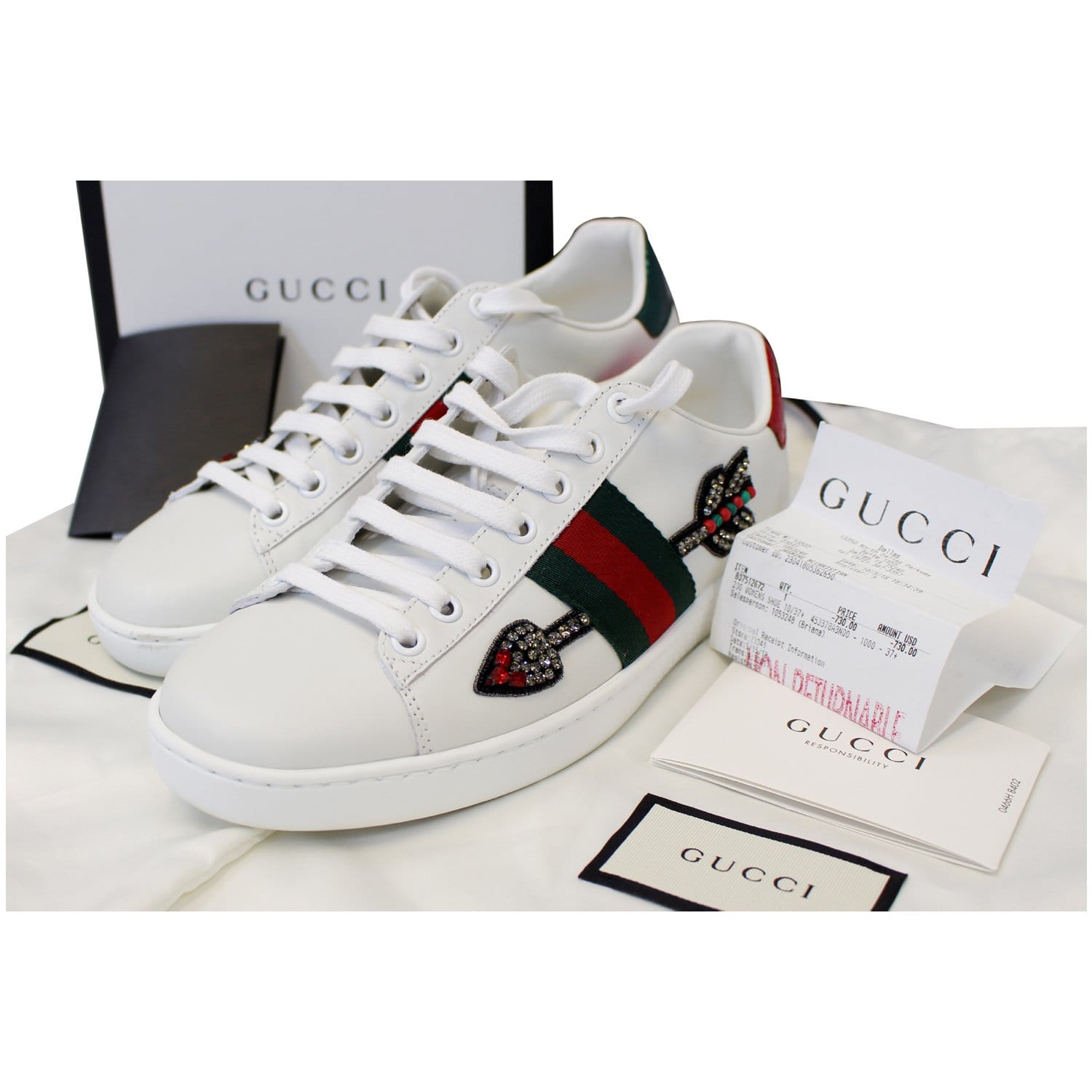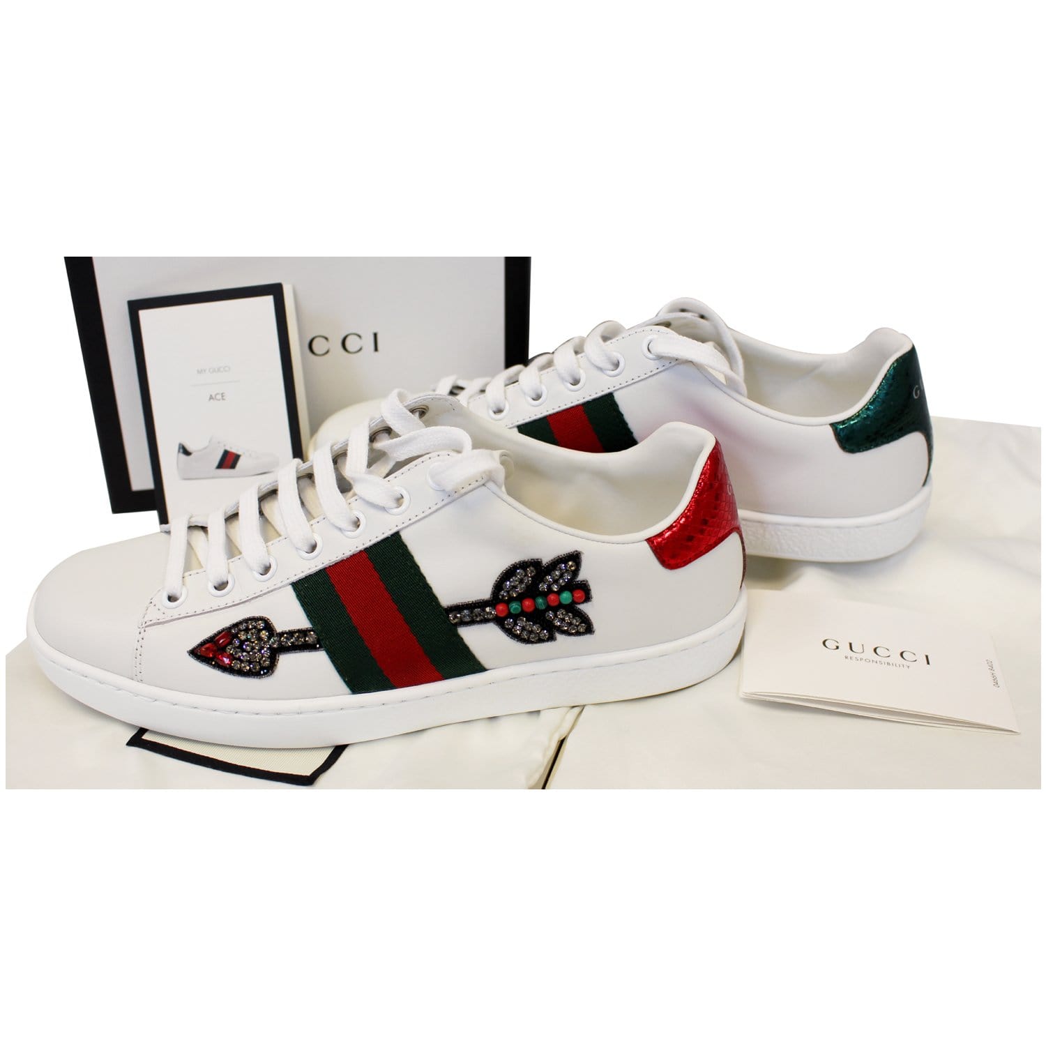 GUCCI Ace Embroidered Arrow Logo Sneakers Size US 7.5