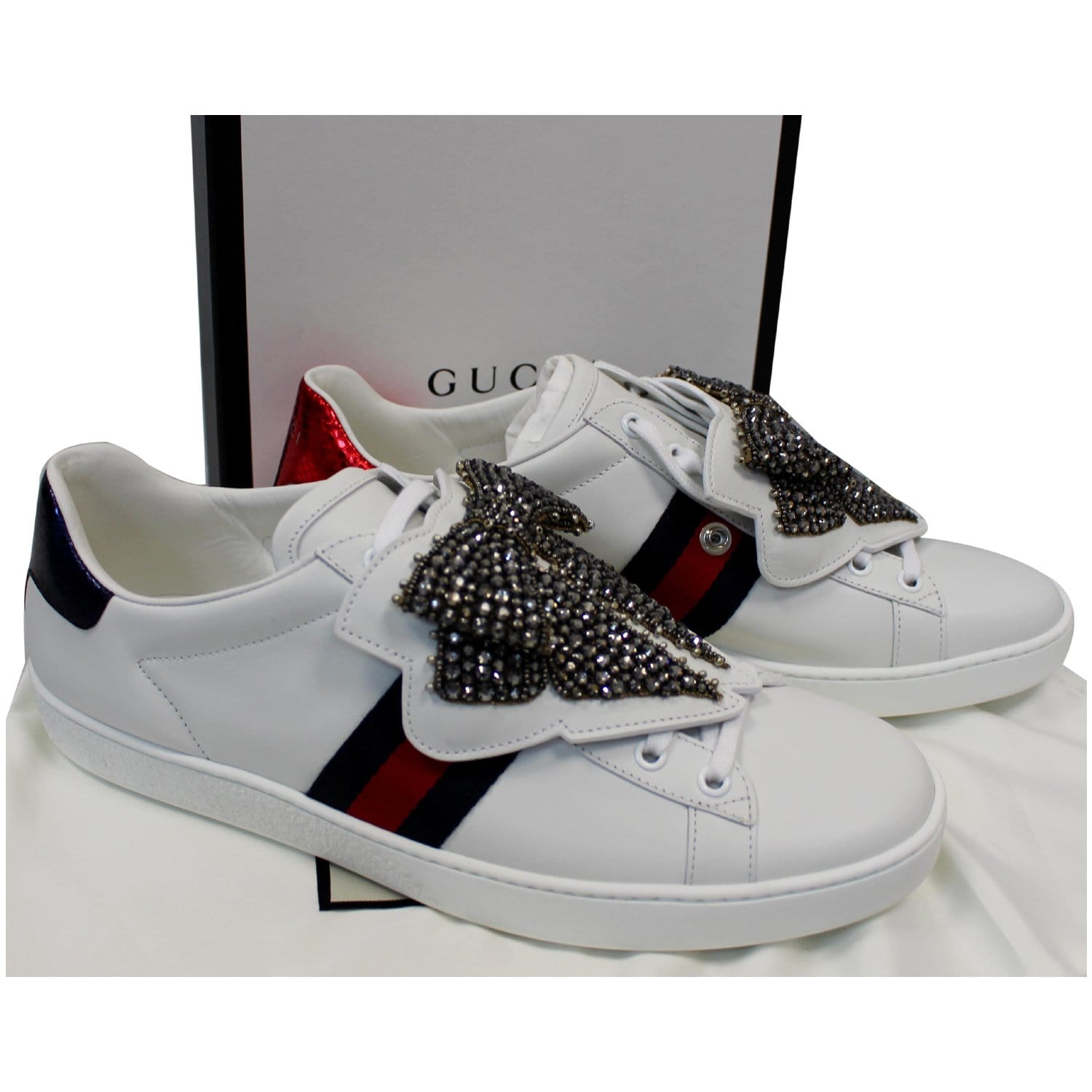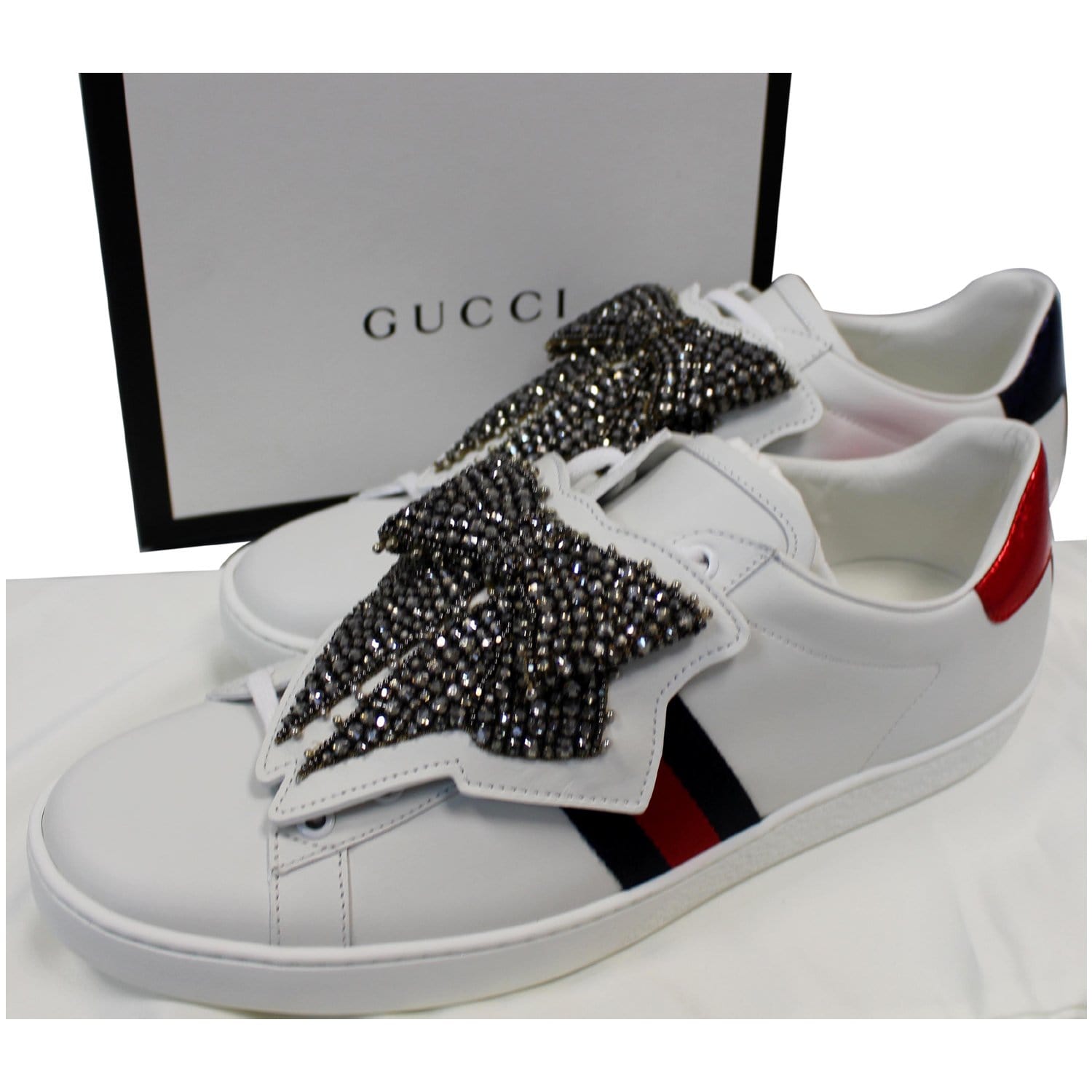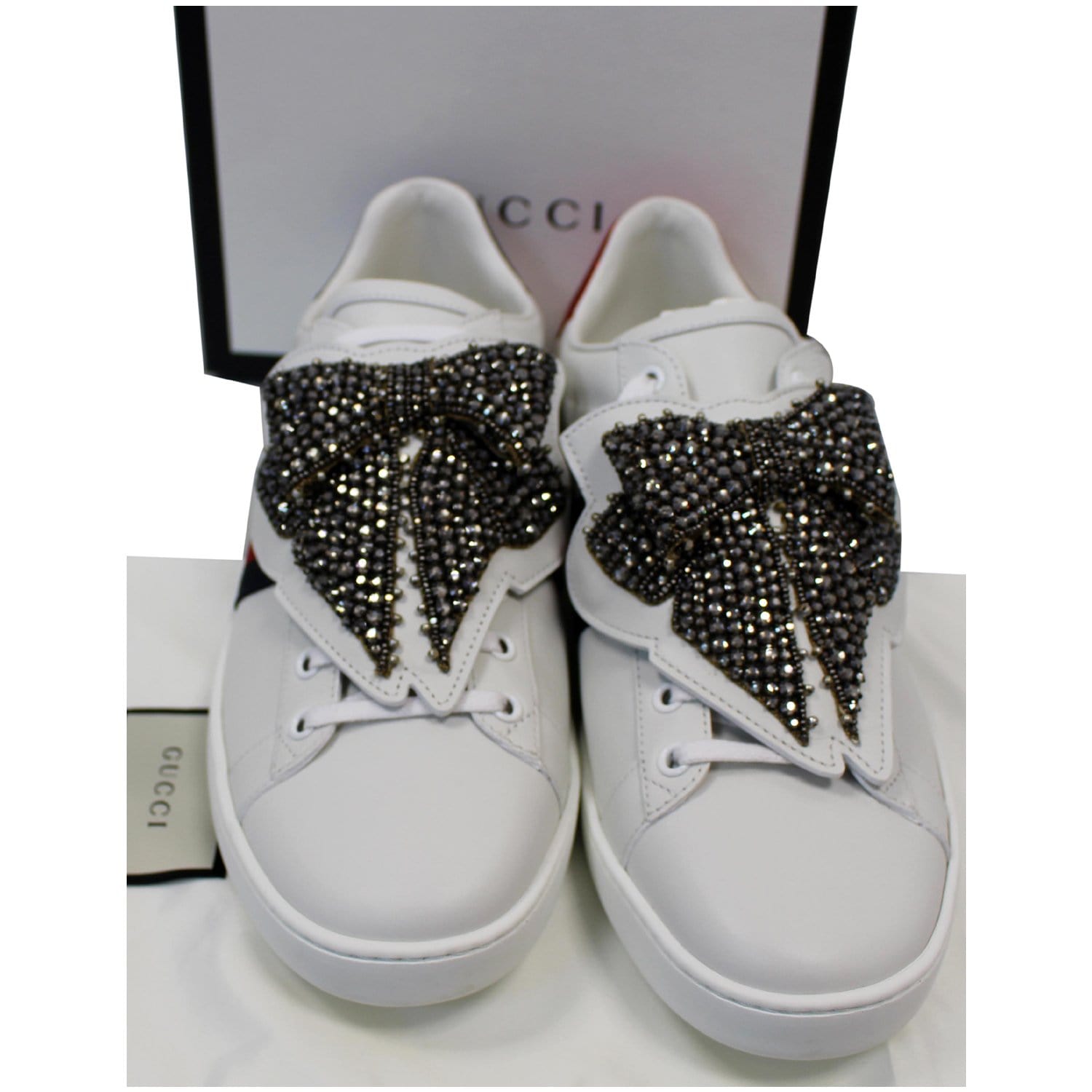 GUCCI Ace Low Top Crystal Bow Patches Sneakers White 481154 US 12