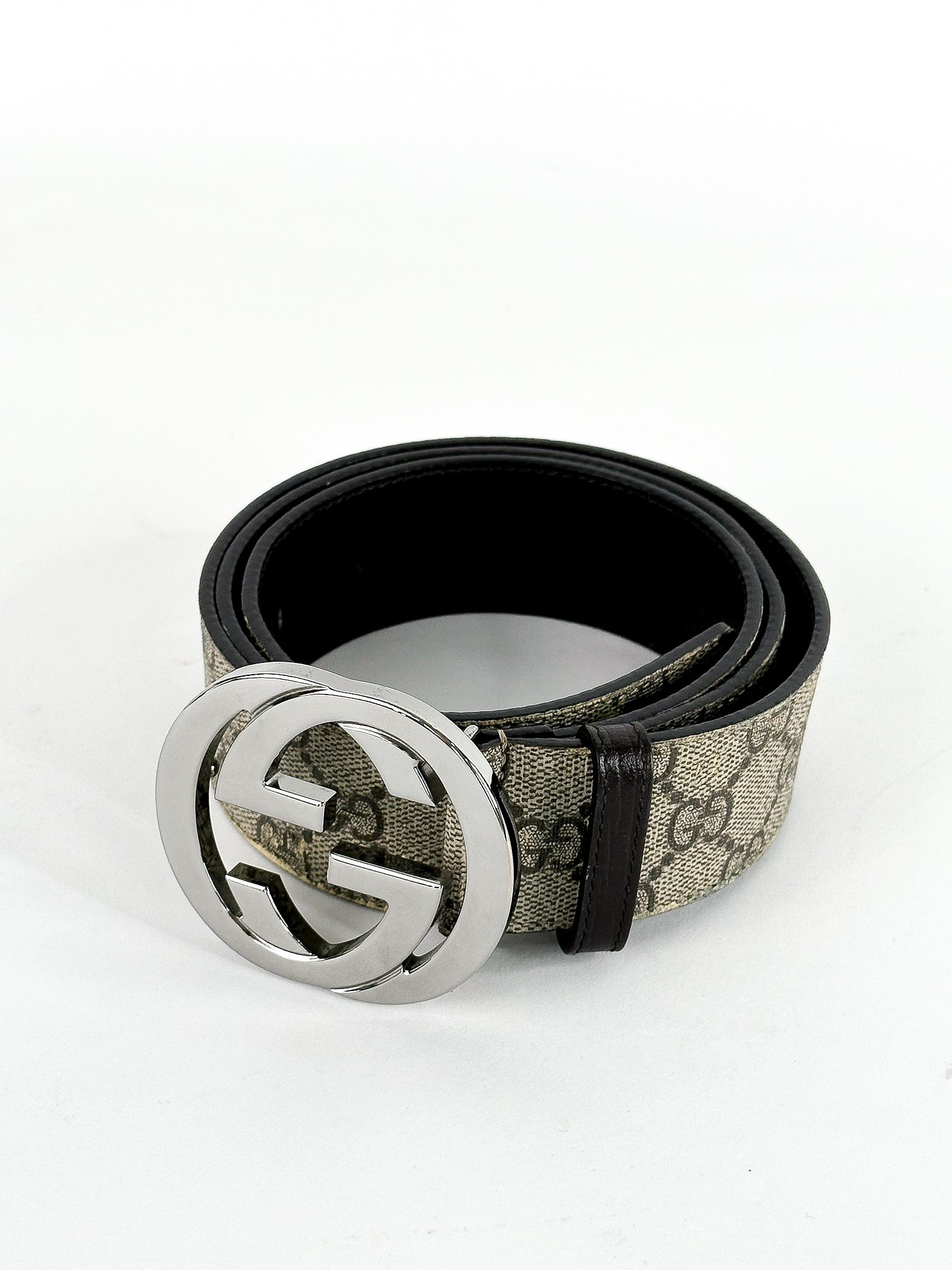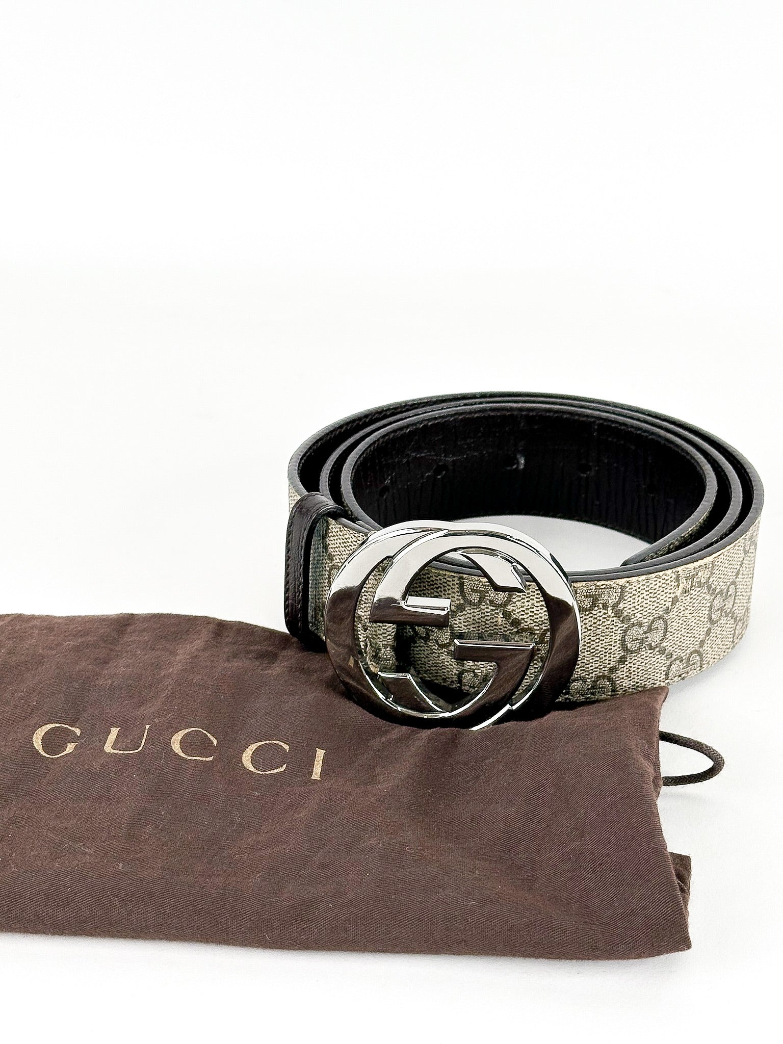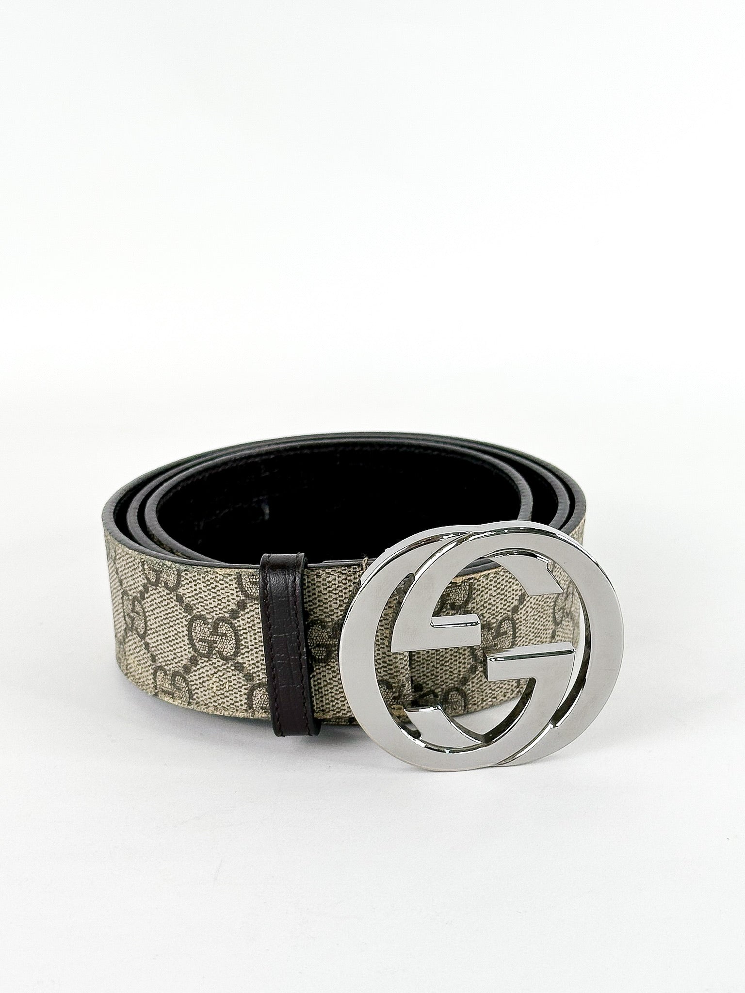 Gucci Beige GG Supreme Canvas Interlocking G Buckle Belt