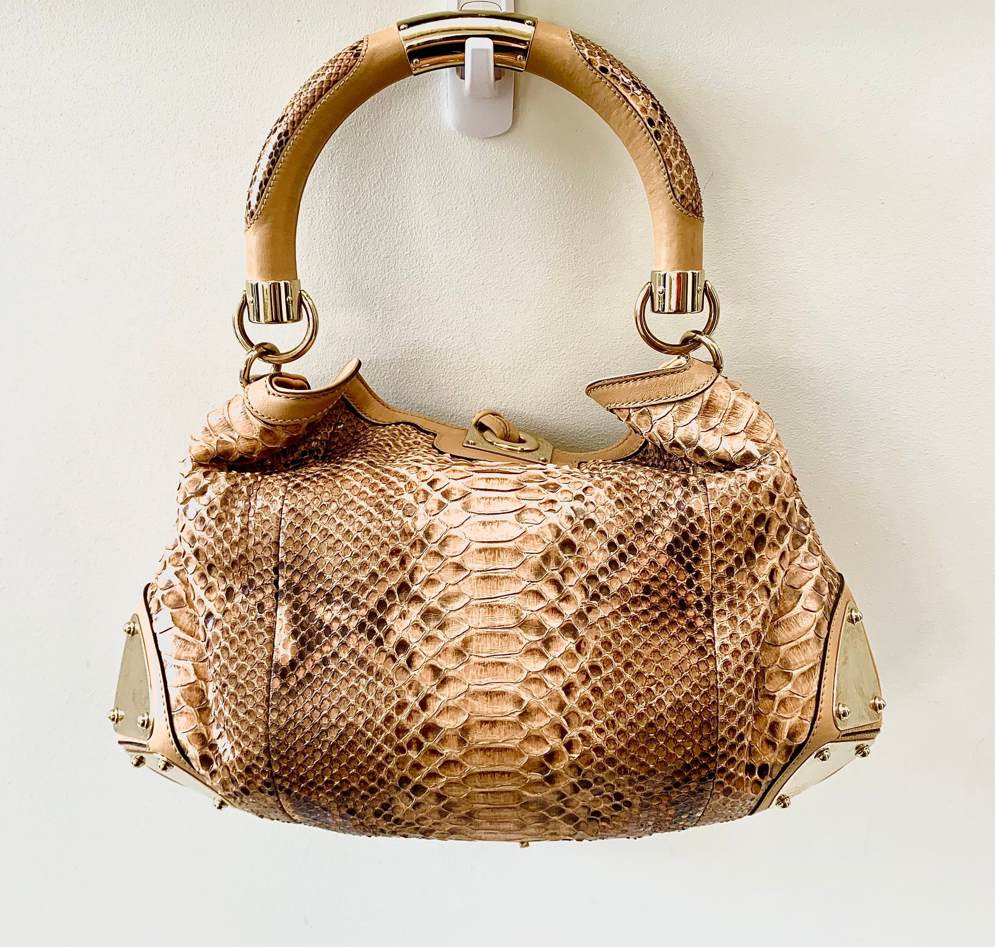 GUCCI BEIGE PYTHON INDY HOBO BAG