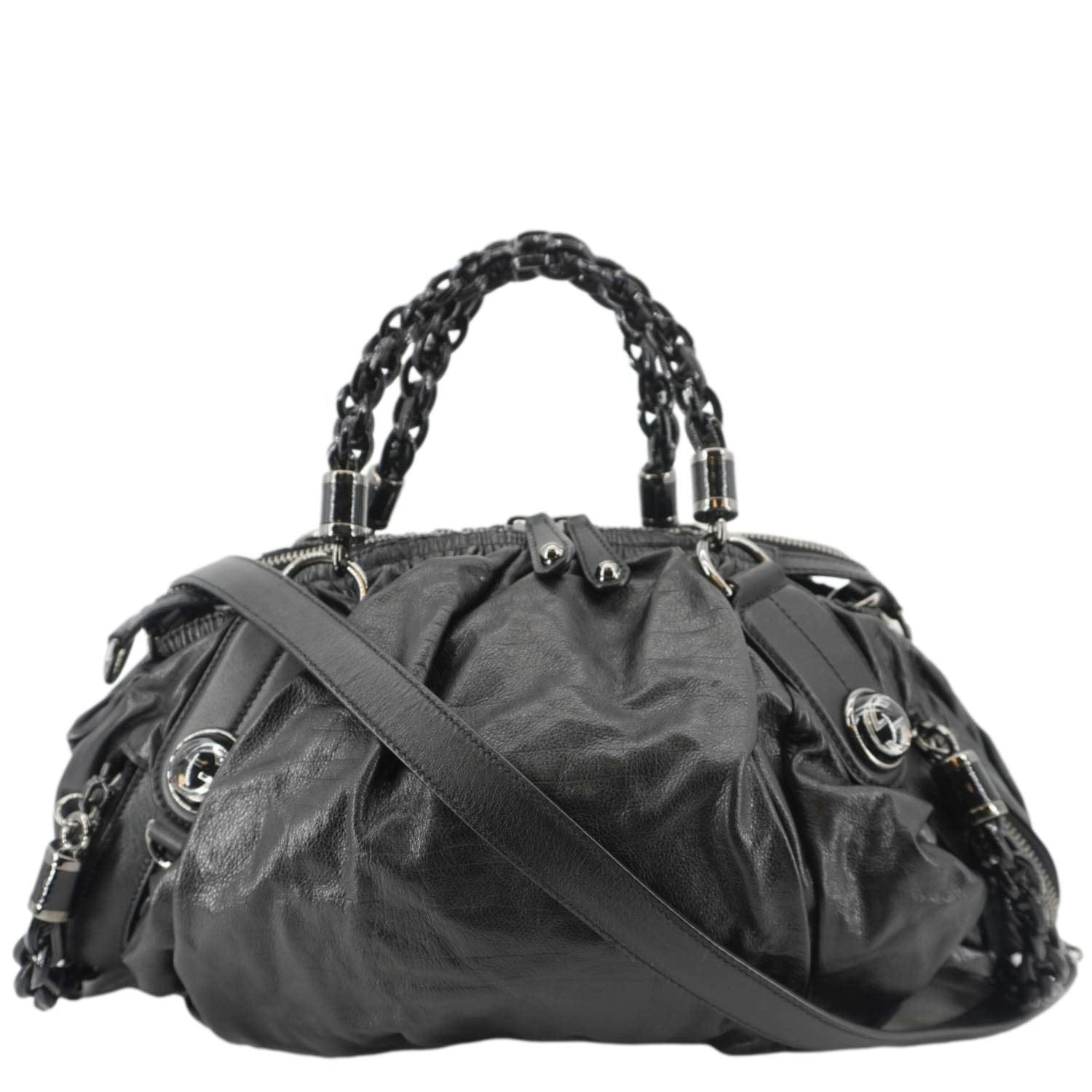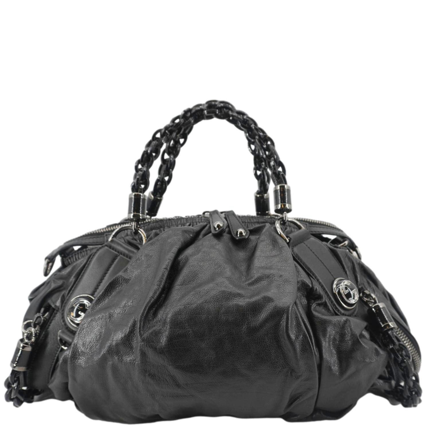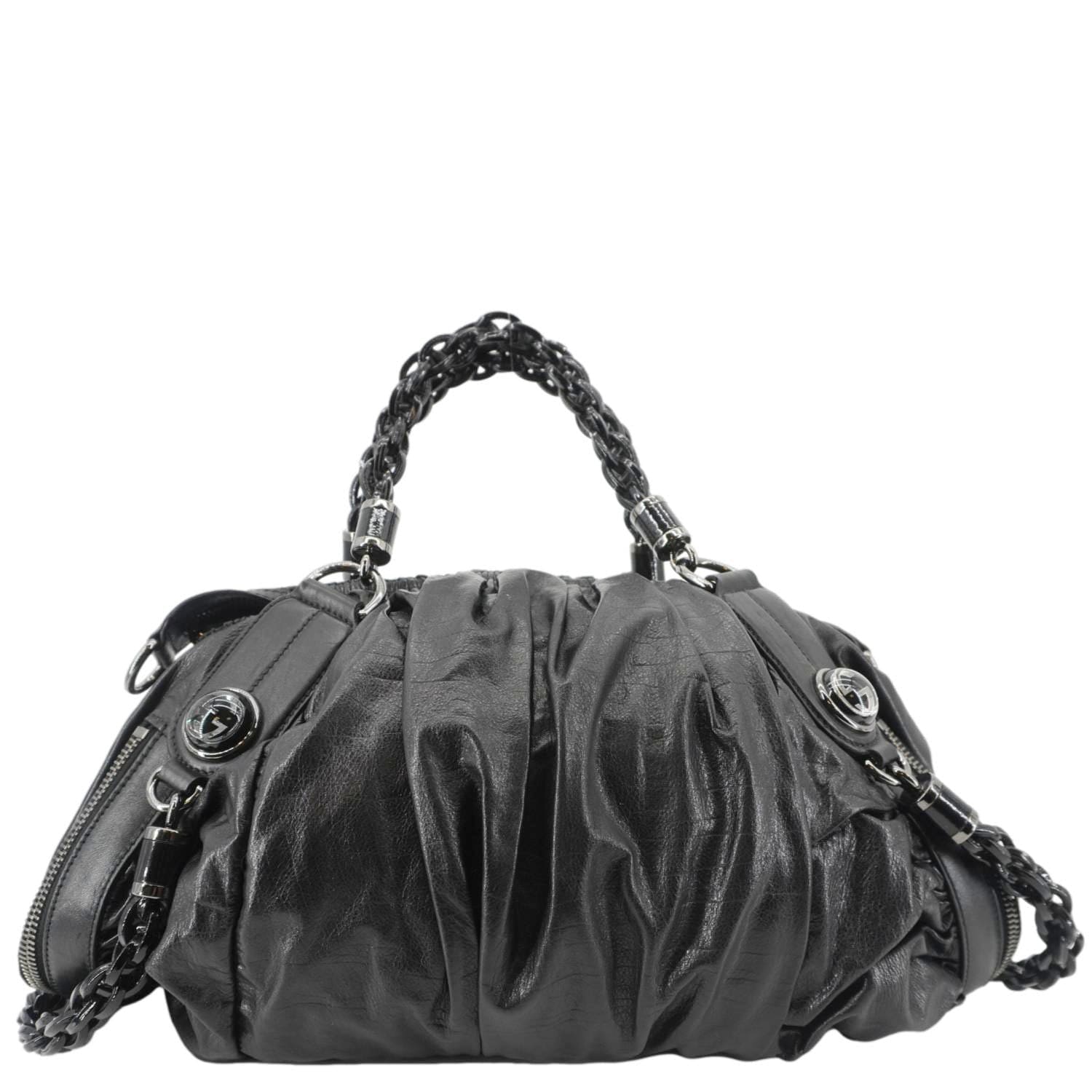 GUCCI Galaxy Medium Leather Top Handle Shoulder Bag Black 228838