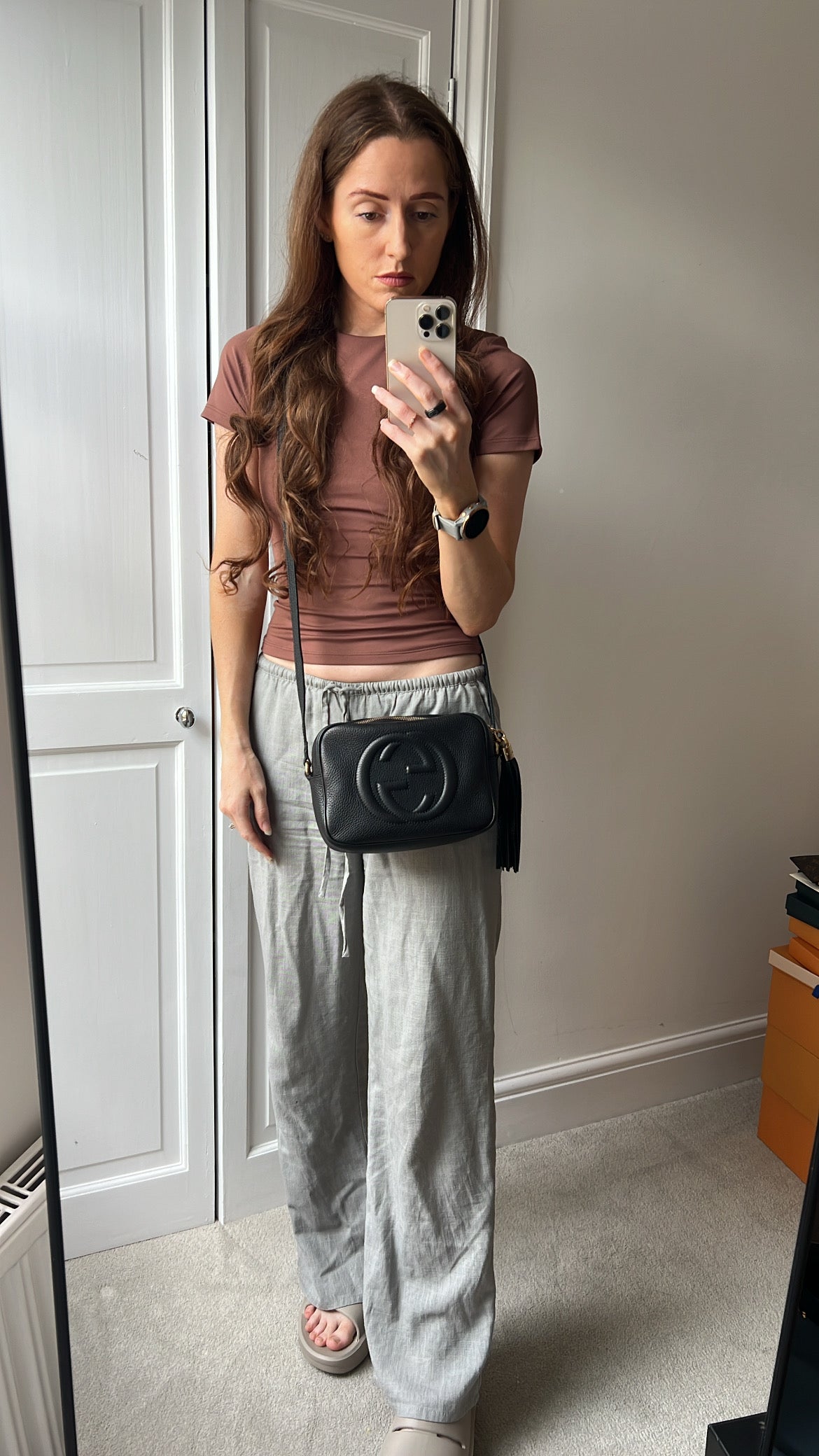 Gucci Soho Disco in Black Leather with pale gold hardware. This practical, cross body, camera style bag is compact in size but still fits a reasonable amount. Can be worn over shoulder or cross body. Gucci's most popular style and goes with any outfit, dressed up or down.
