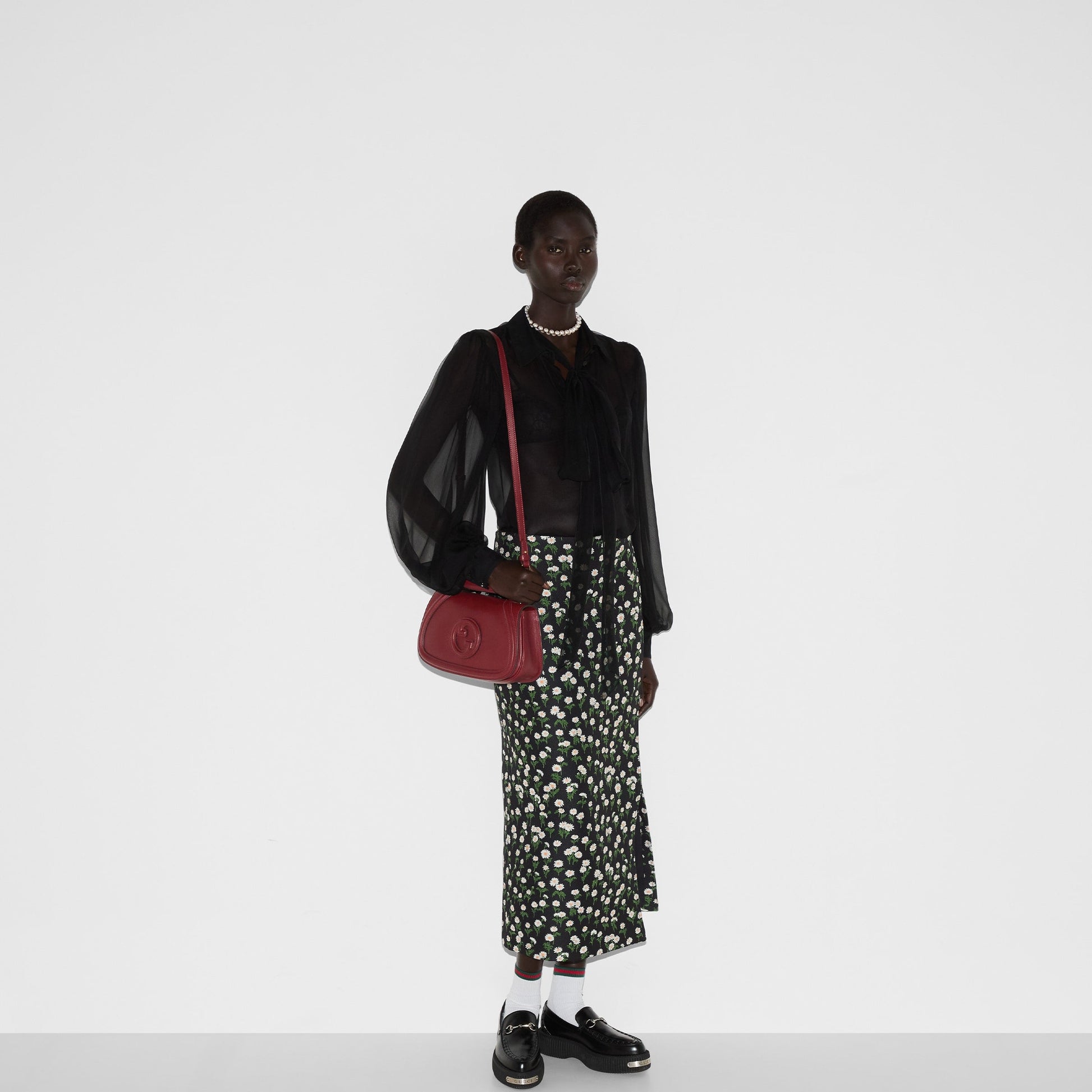 The new Gucci Blondie bag, whose distinctive logo first appeared in the House’s collections in the early 1970s, weaves together past and present in a fusion of nostalgia and modernity. Presented in fresh beige cotton linen canvas and smooth brown leather trim, this small bag is complete with a top handle and adjustable shoulder strap.
