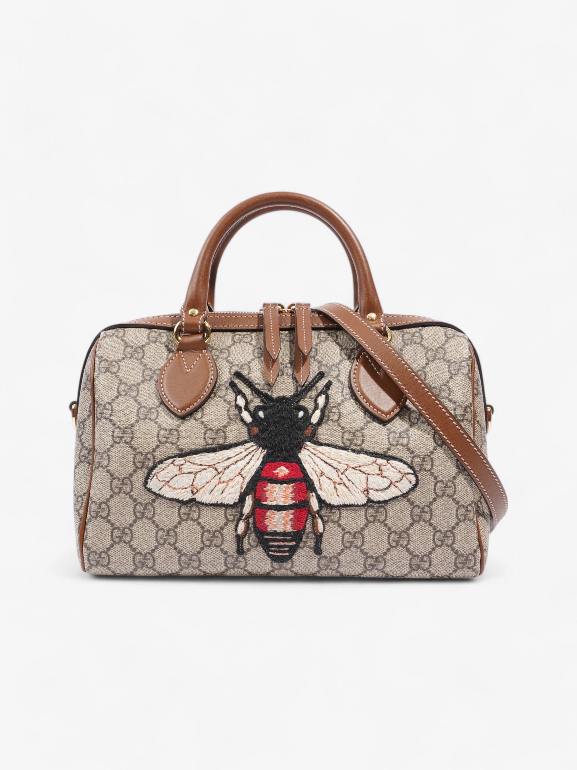 Gucci Boston Bee Bag GG Supreme / Brown Coated Canvas Small