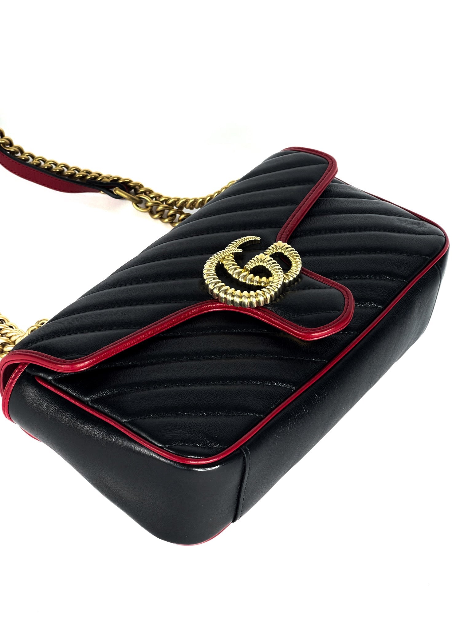 Gucci Calfskin Matelasse Diagonal Small Torchon GG Marmont Shoulder Bag Black Romantic Cherry