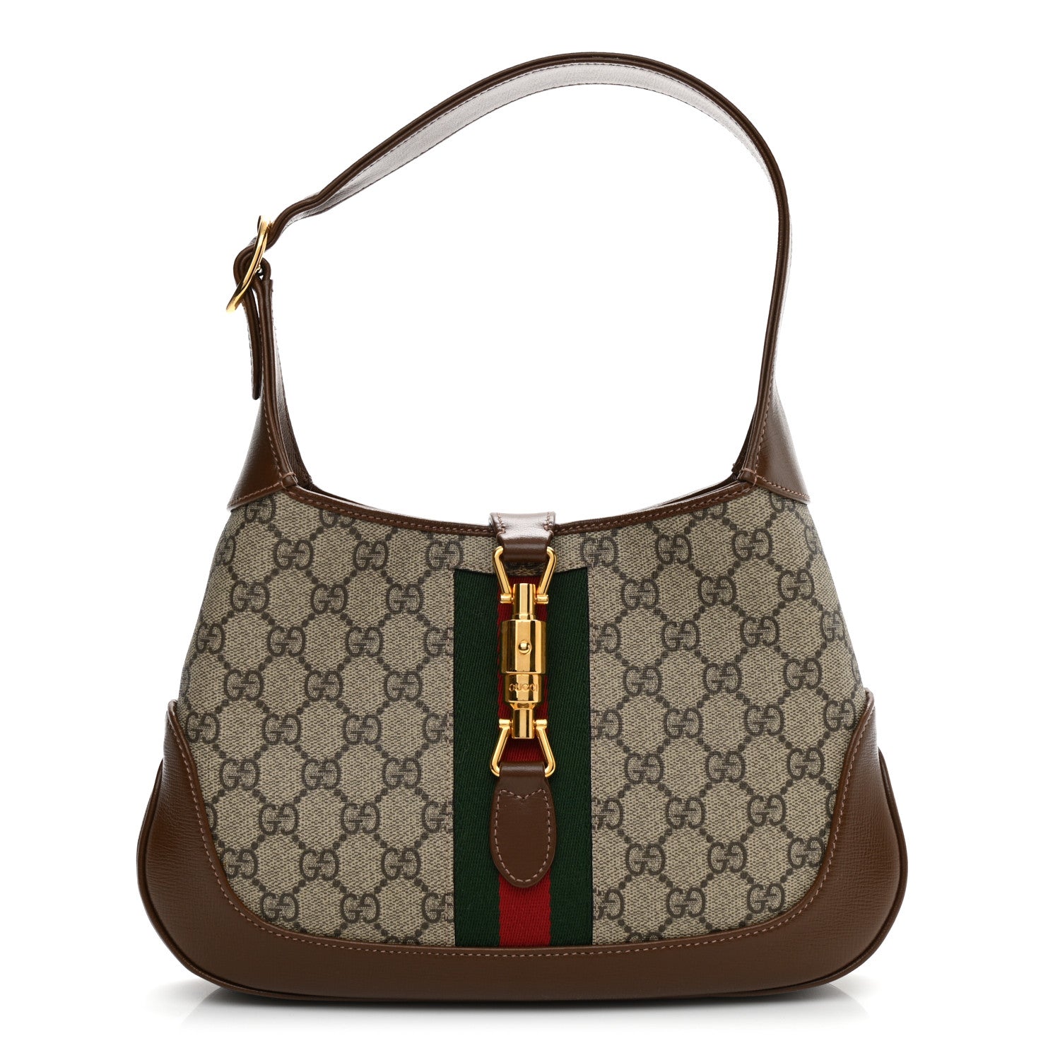 Brown, Red, and Green Canvas and Leather Jackie GG Bag,