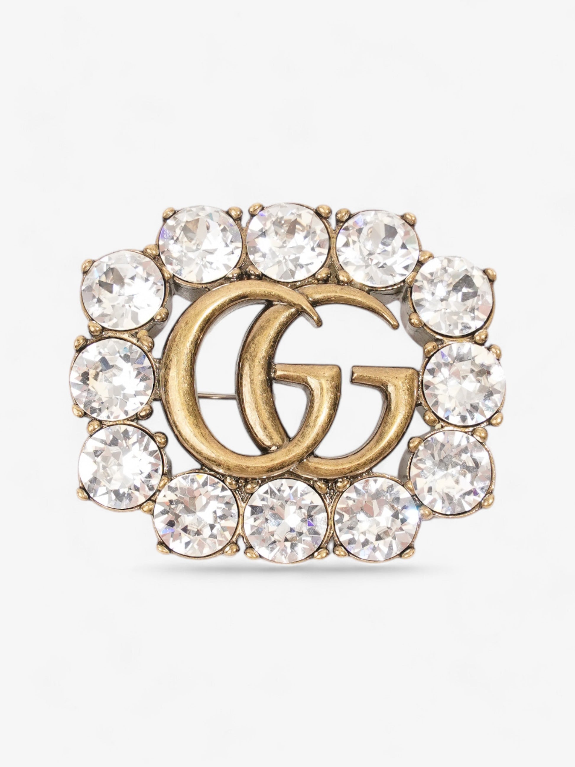 Gucci Crystal Double G Brooch Aged Gold Base Metal