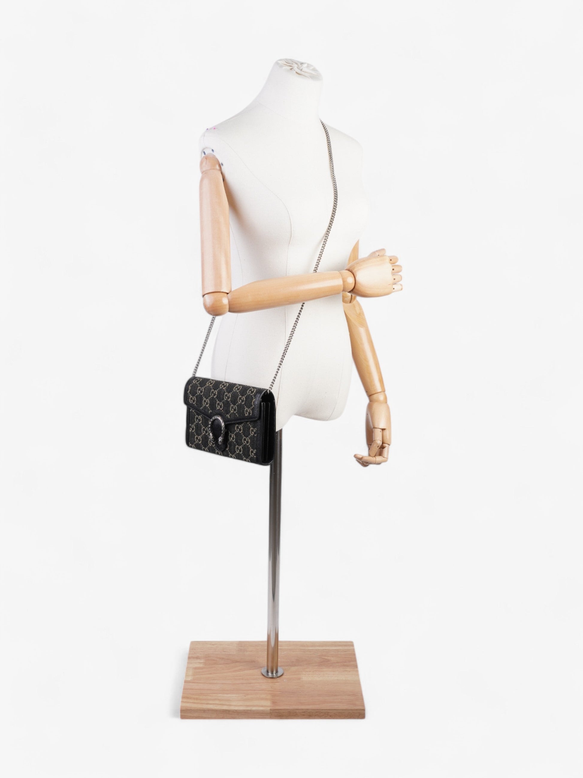 Gucci Dionysus Chain Wallet Black / GG Supreme / Ivory Denim