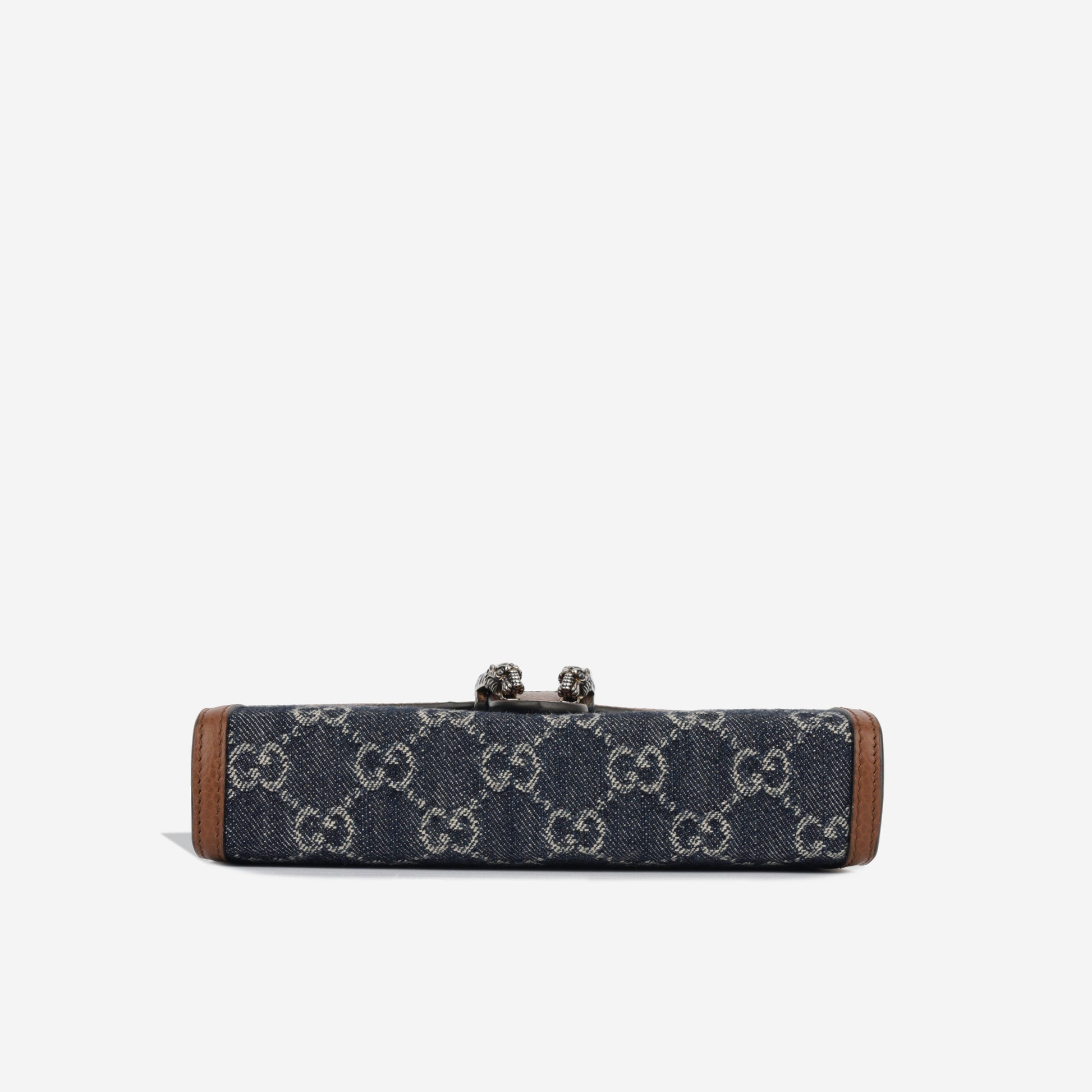 The very popular Gucci signature GG motif has been worked into the classic Dionysus Chain Wallet. Made in Italy, the Dionysus shoulder bag is suspended from a shoulder chain that can be worn multiple ways. The tiger head remains an eye catching feature on this defining silhouette. The Dionysus Chain Wallet is the perfect statement handbag to be added to any collection, and perfect classic piece for your next night out.