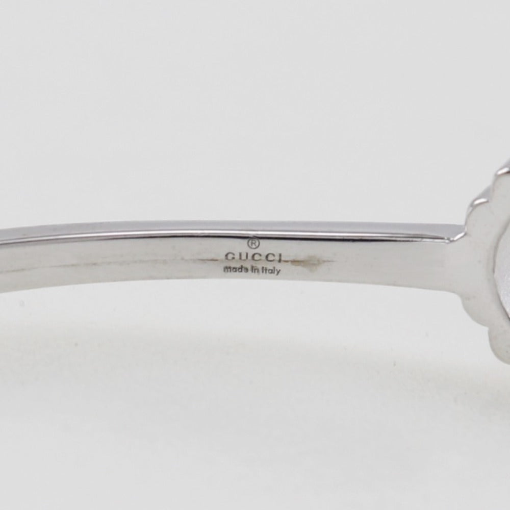 The Gucci GG Running bangle is a stunning piece crafted from K18 white gold and adorned with sparkling diamonds. Made in Italy, this elegant bangle showcases Gucci's exceptional craftsmanship and timeless design, making it a perfect addition to any jewelry collection.