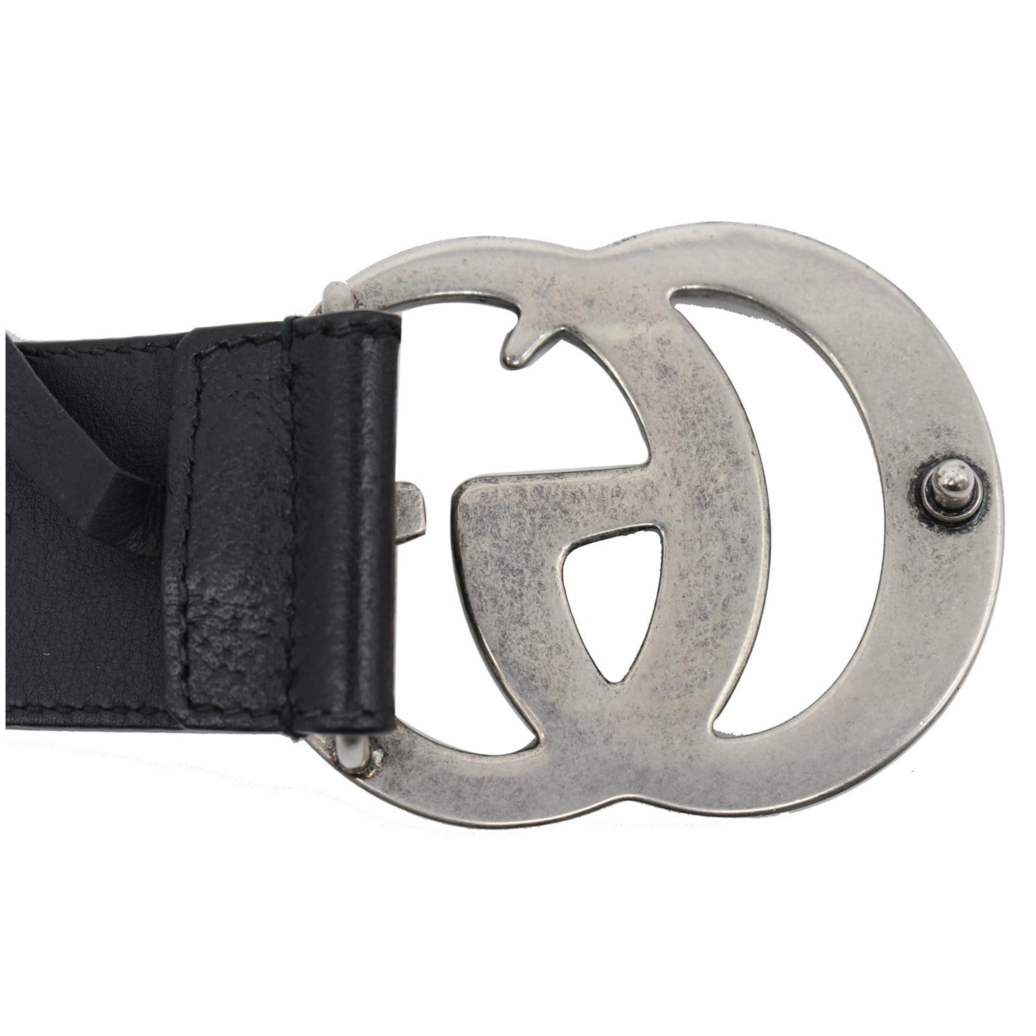 GUCCI Double G Buckle Leather Belt Black 406831 Size 90.36