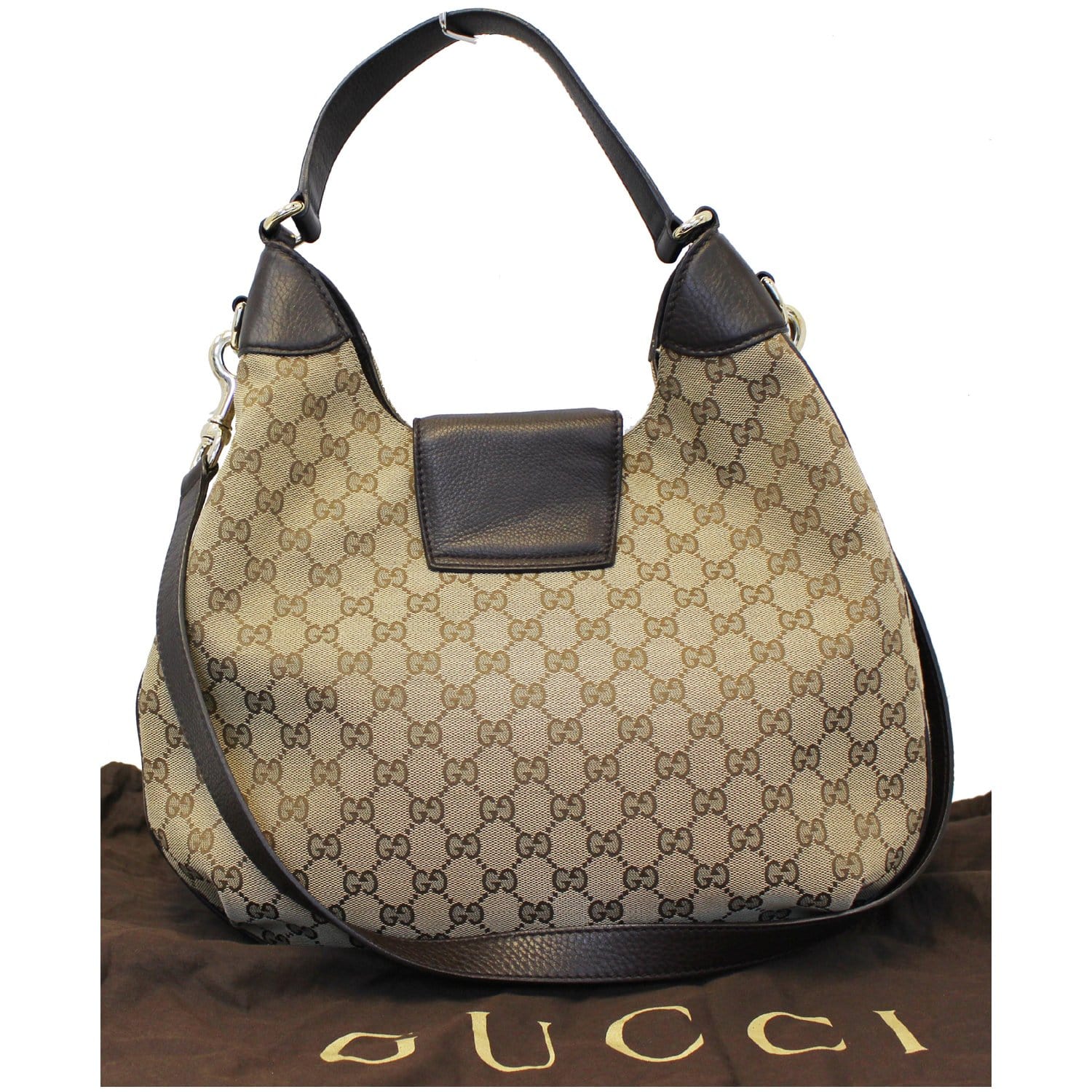 GUCCI Dressage Monogram Web Hobo Bag Dark Brown