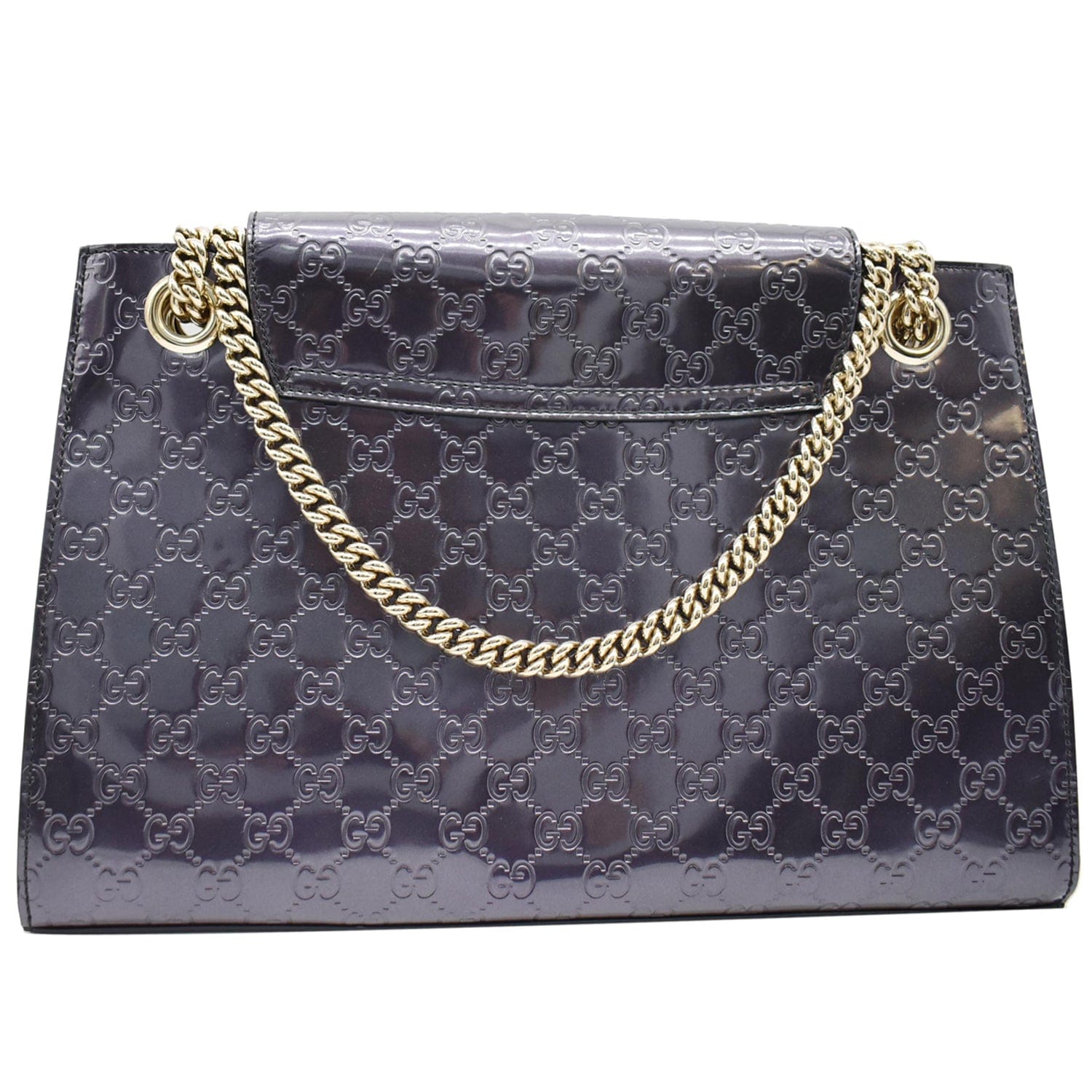 GUCCI Emily Large Guccissima Patent Leather Shoulder Bag Dark Violet 295403