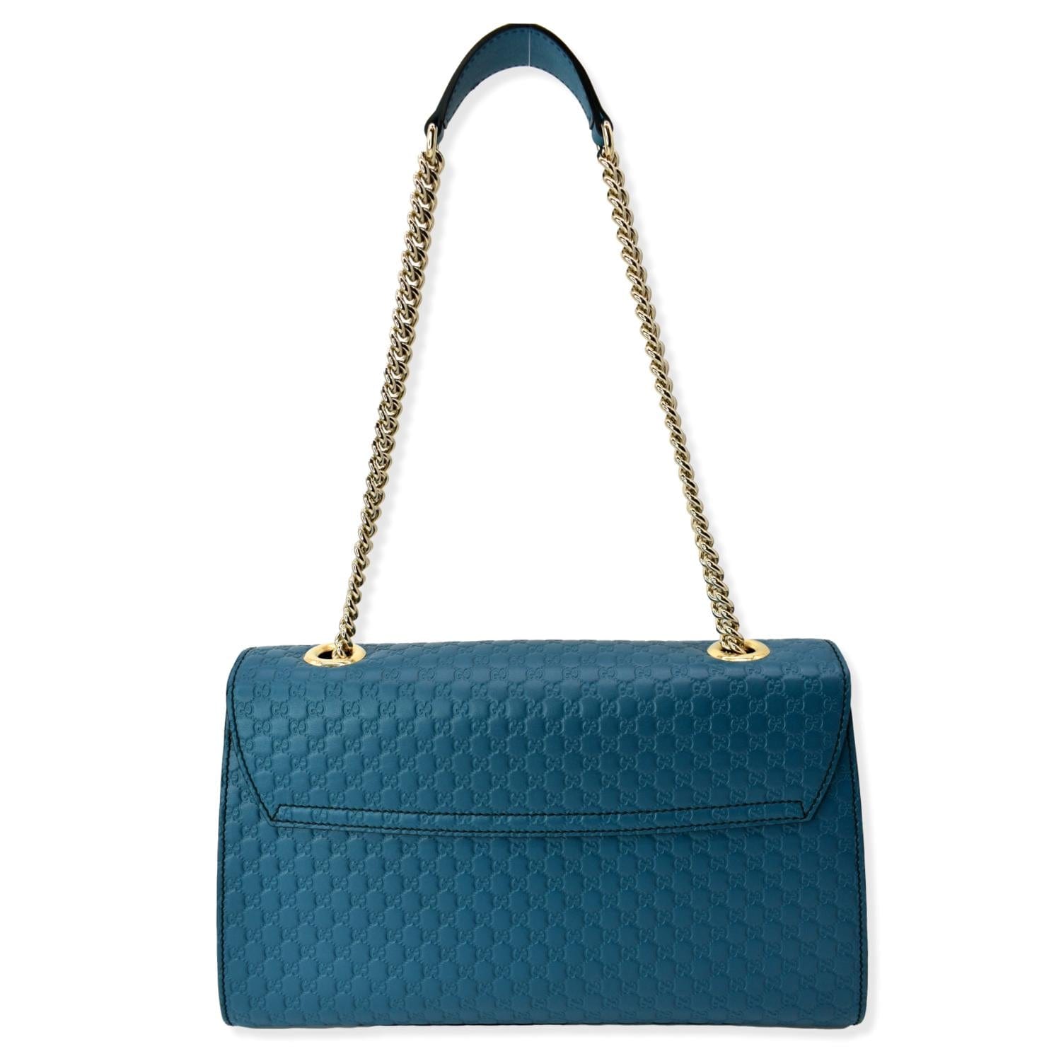 GUCCI Emily Medium GG Guccissima Leather Chain Shoulder Bag Teal