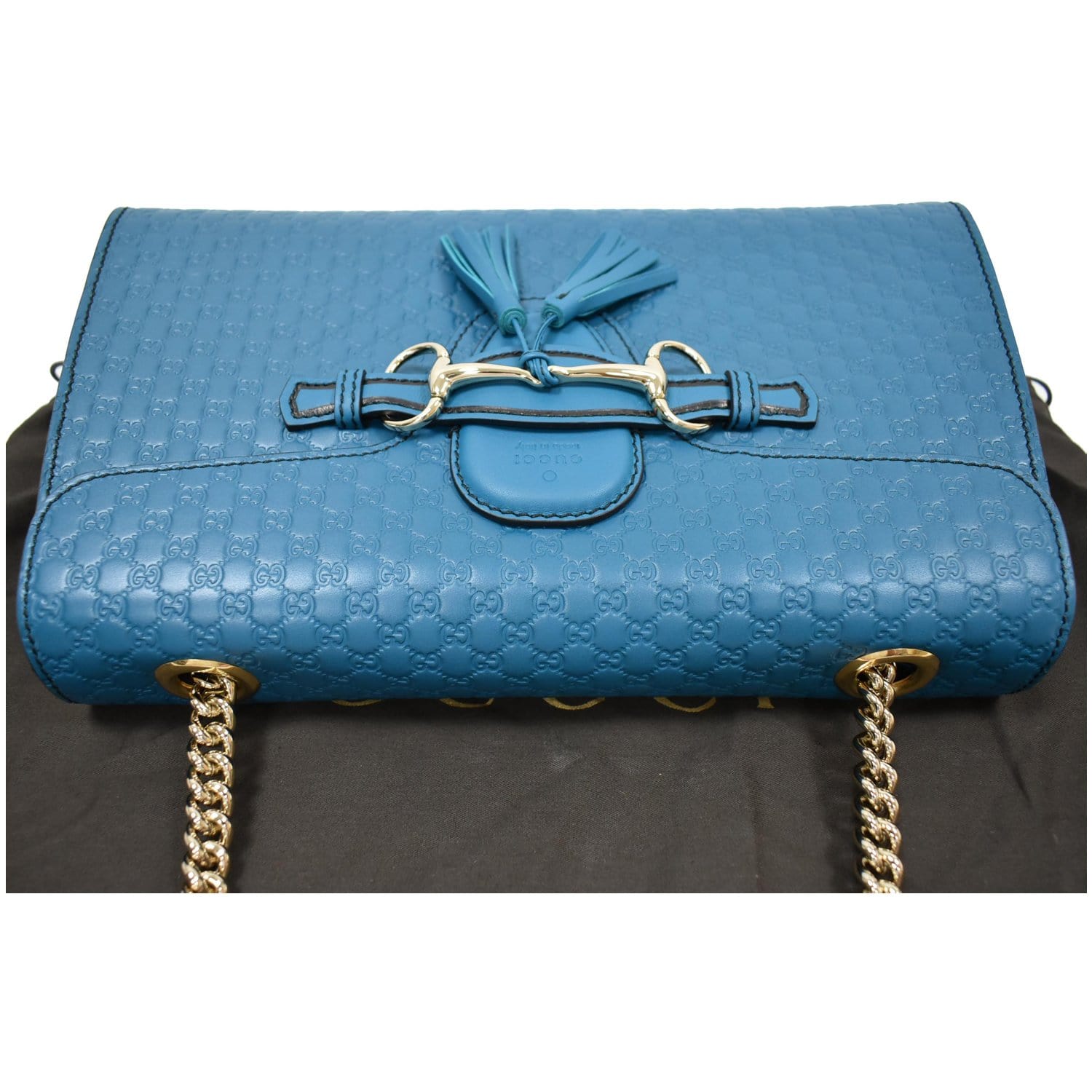 GUCCI Emily Medium GG Guccissima Leather Chain Shoulder Bag Teal