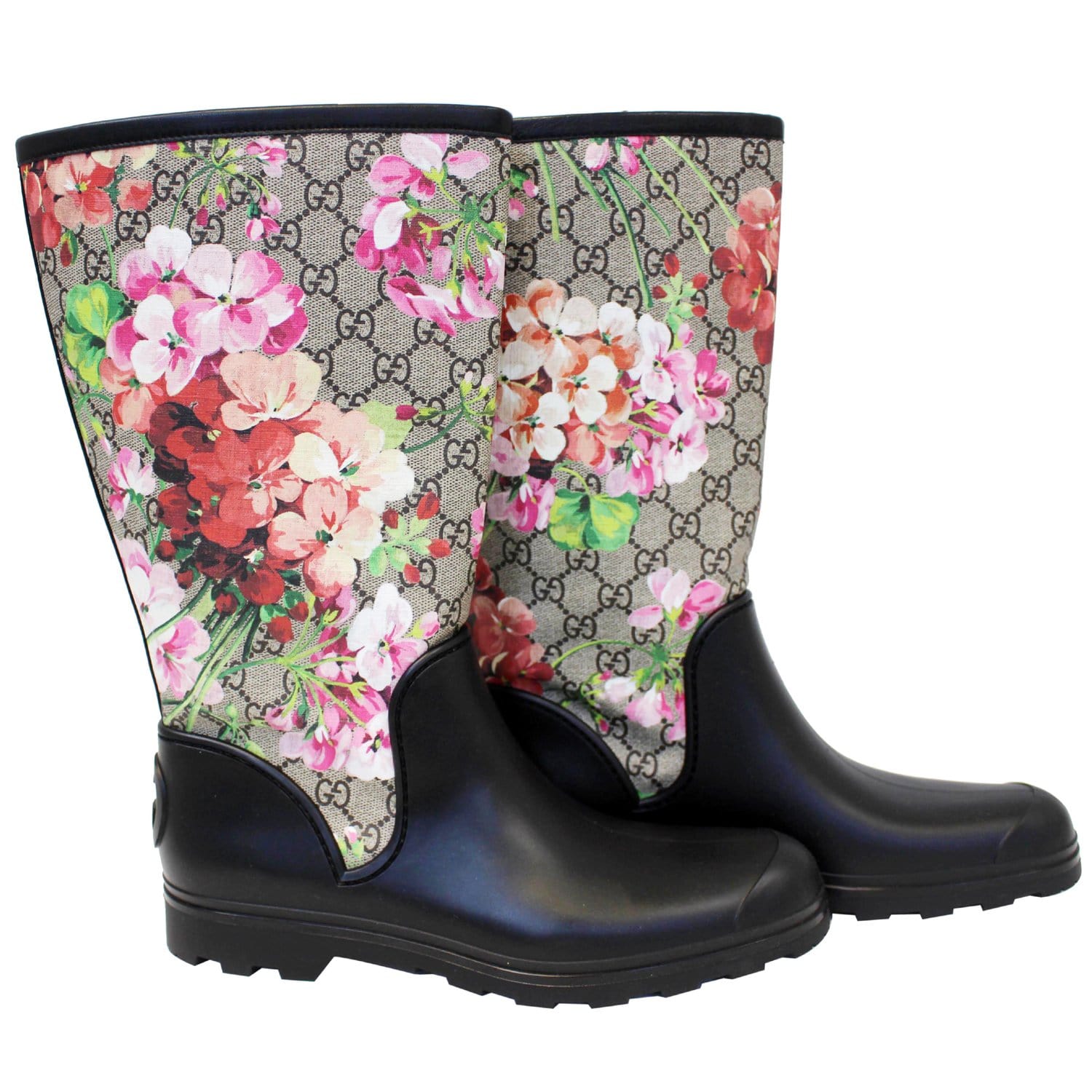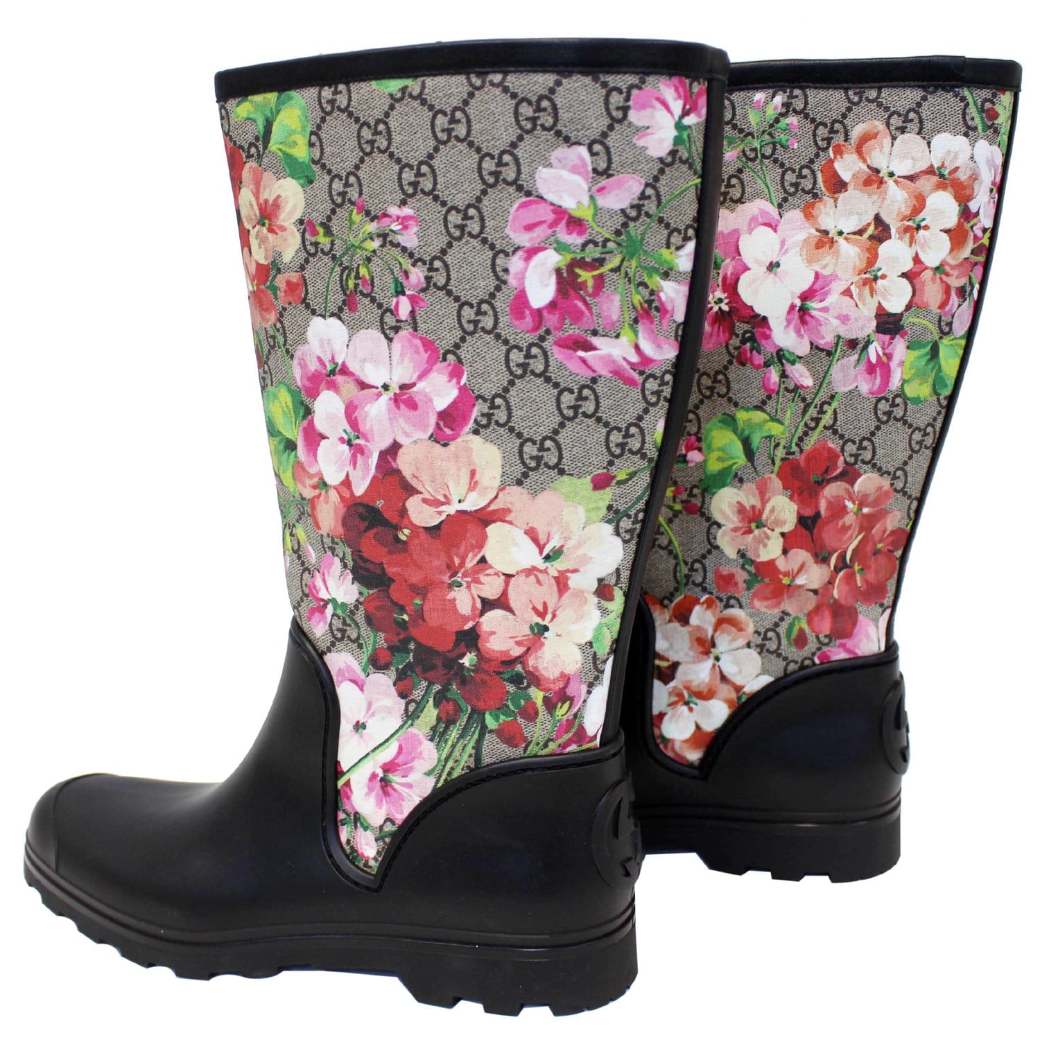GUCCI GG Supreme Monogram Blooms Flat Rubber Boots Size 41