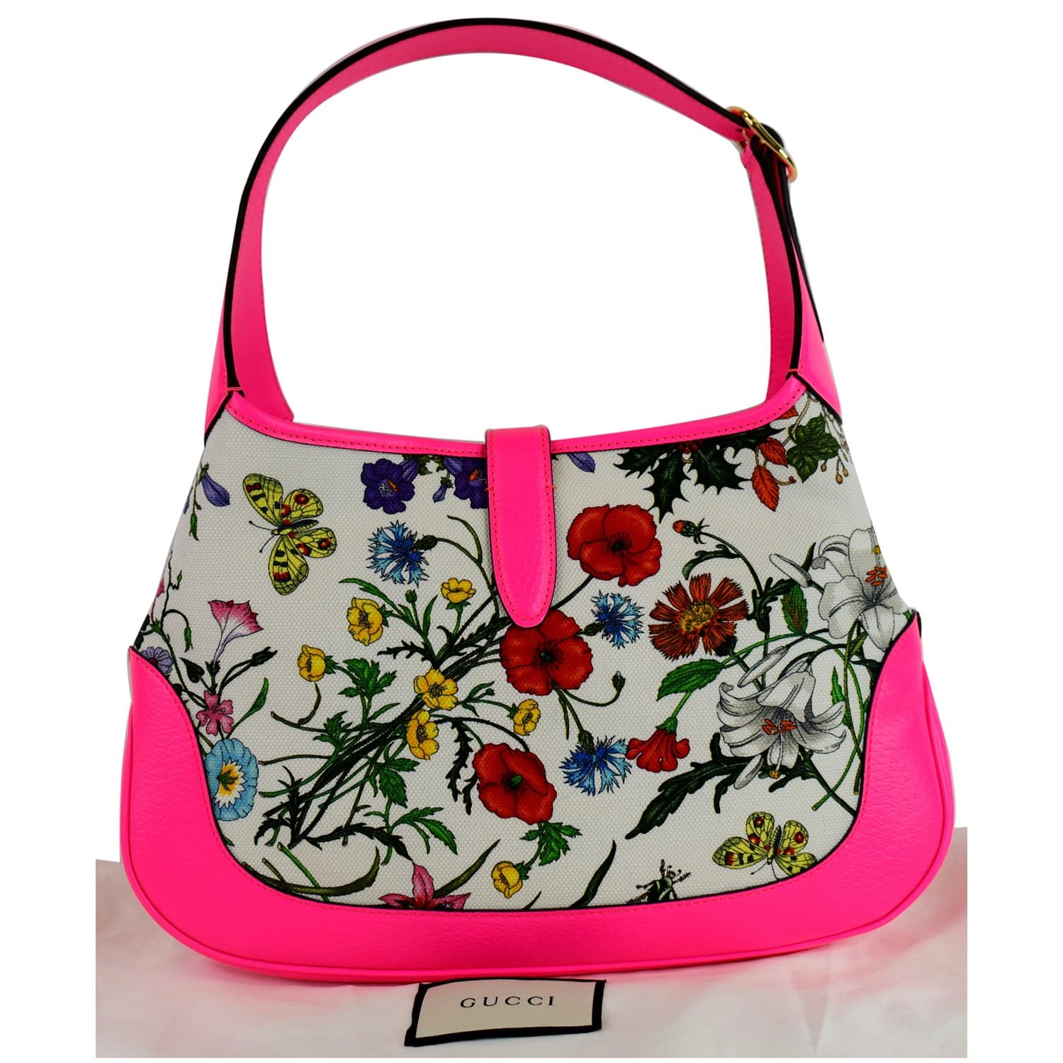 GUCCI Flora Jackie Medium Canvas Hobo Bag Pink 550152