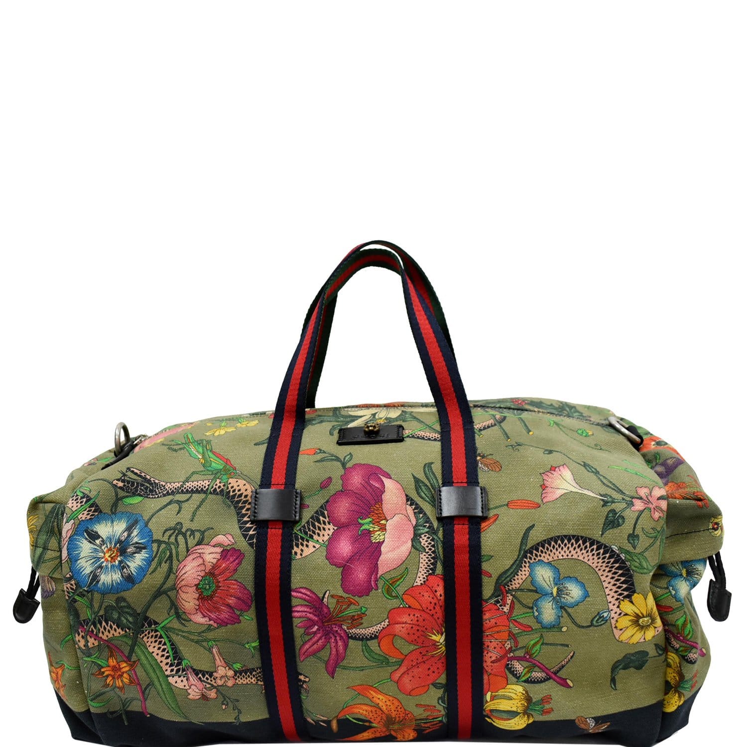 GUCCI Floral Animal Canvas Web Duffel Travel Bag Khaki Green 450983