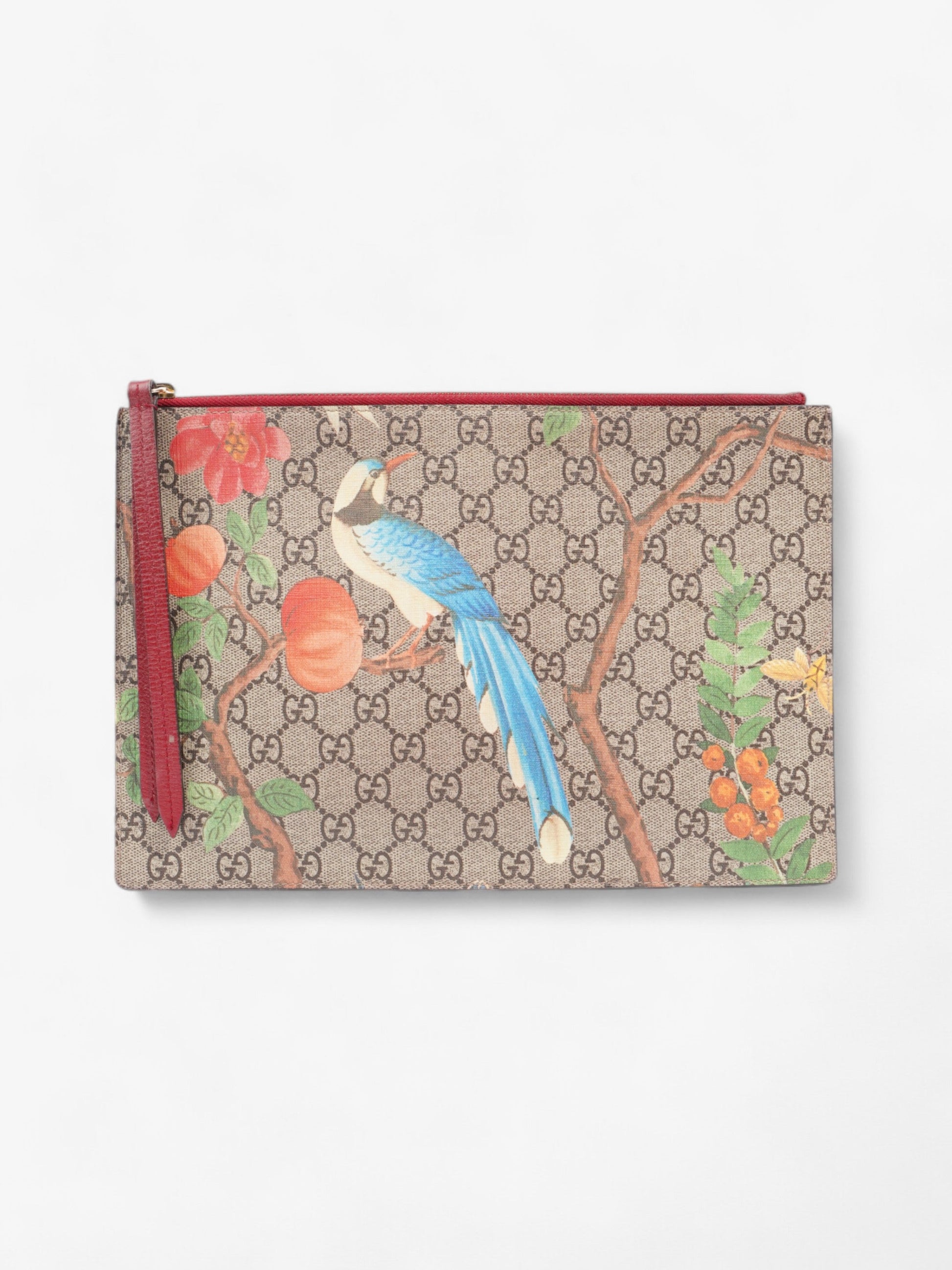 Gucci Floral Bird Clutch Supreme Coated Canvas