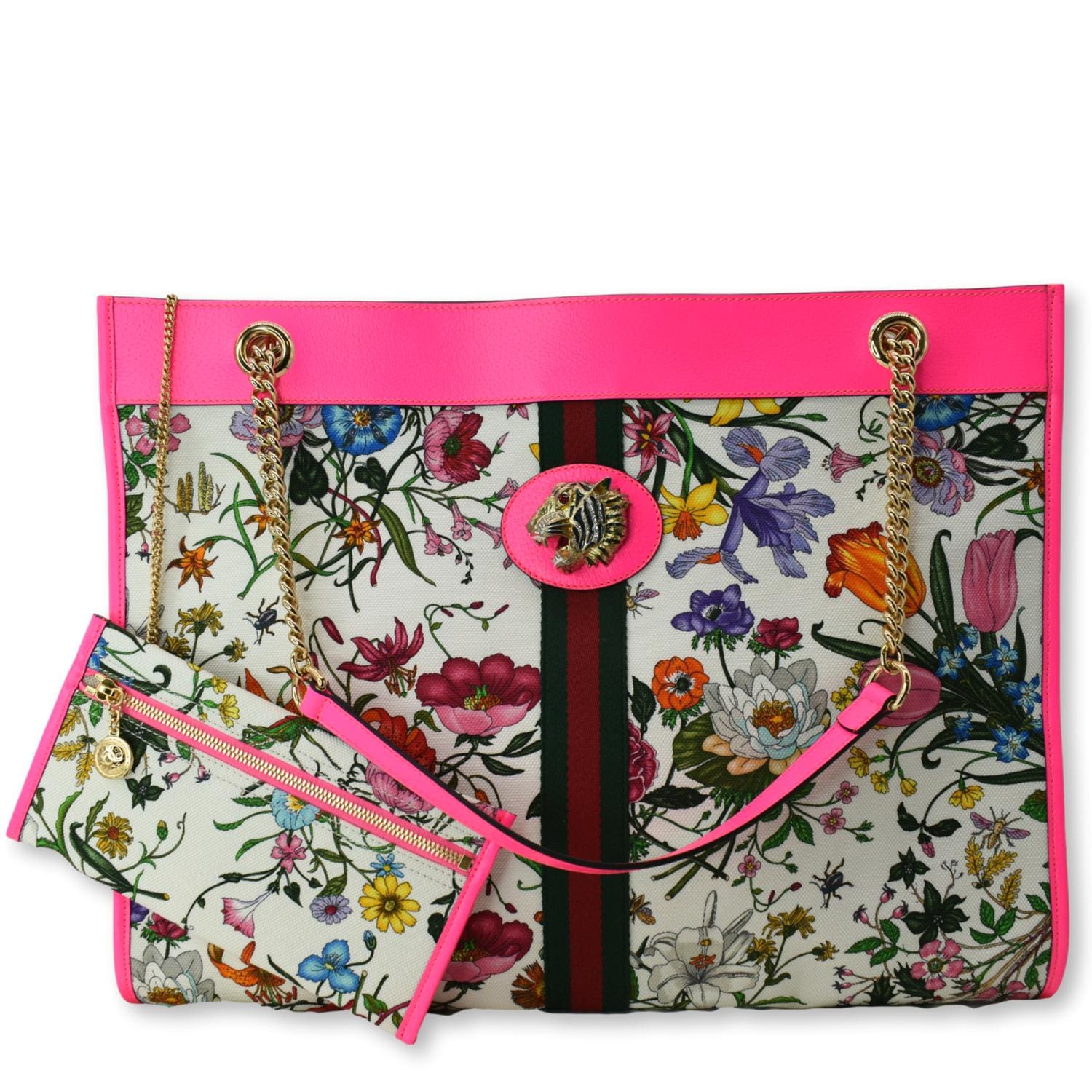 GUCCI Floral Rajah Large Canvas Leather Tote Bag Multicolor 537219