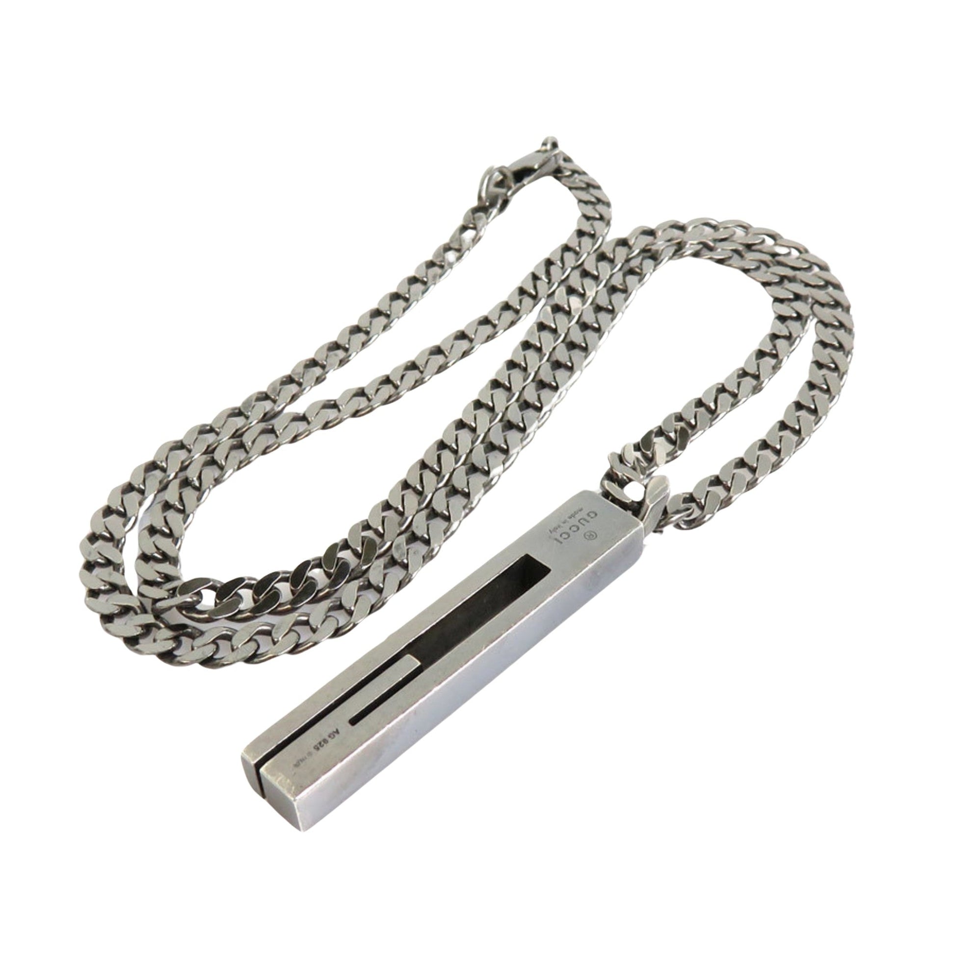 Introducing the Gucci G Logo Necklace, a striking accessory designed for both women and men who appreciate bold style and quality craftsmanship. Crafted from premium Silver 925 in a sleek gunmetal finish, this necklace exudes modern sophistication. Featuring the iconic Gucci G logo design, it adds a touch of luxury to any ensemble. Perfect for making a statement, its versatile design allows for effortless styling.