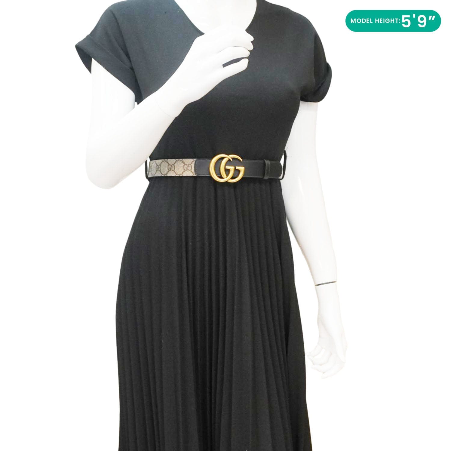 The Gucci Double G Buckle Belt in beige GG Supreme canvas is a classic accessory with timeless appeal. Featuring the iconic Double G buckle and leather trim, it’s a versatile piece that adds a touch of luxury to any outfit.