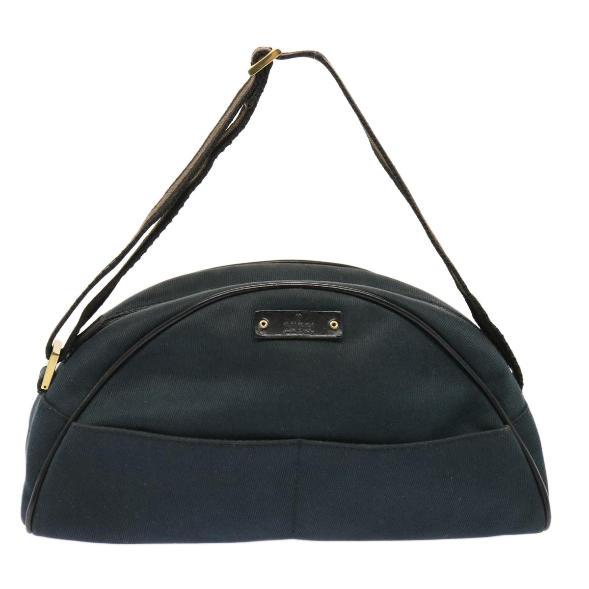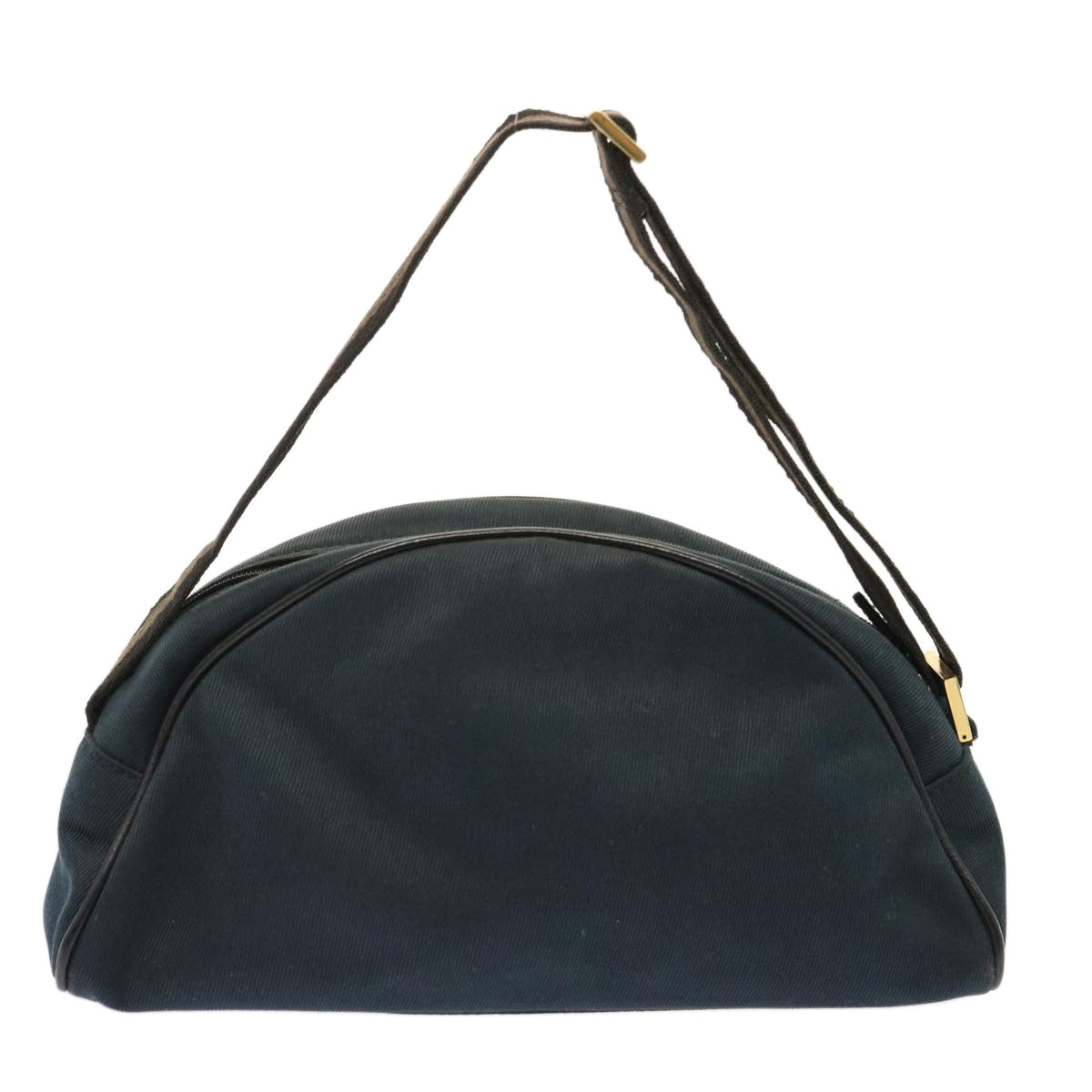 The exterior surface shows some rubbing and slight loss of shape. The shoulder strap is also rubbed, and the metal fittings have noticeable scratches. Inside the bag, there is evidence of rubbing, which is similarly present in the pocket. The corners are rubbed, and the bag carries a faint storage odor.