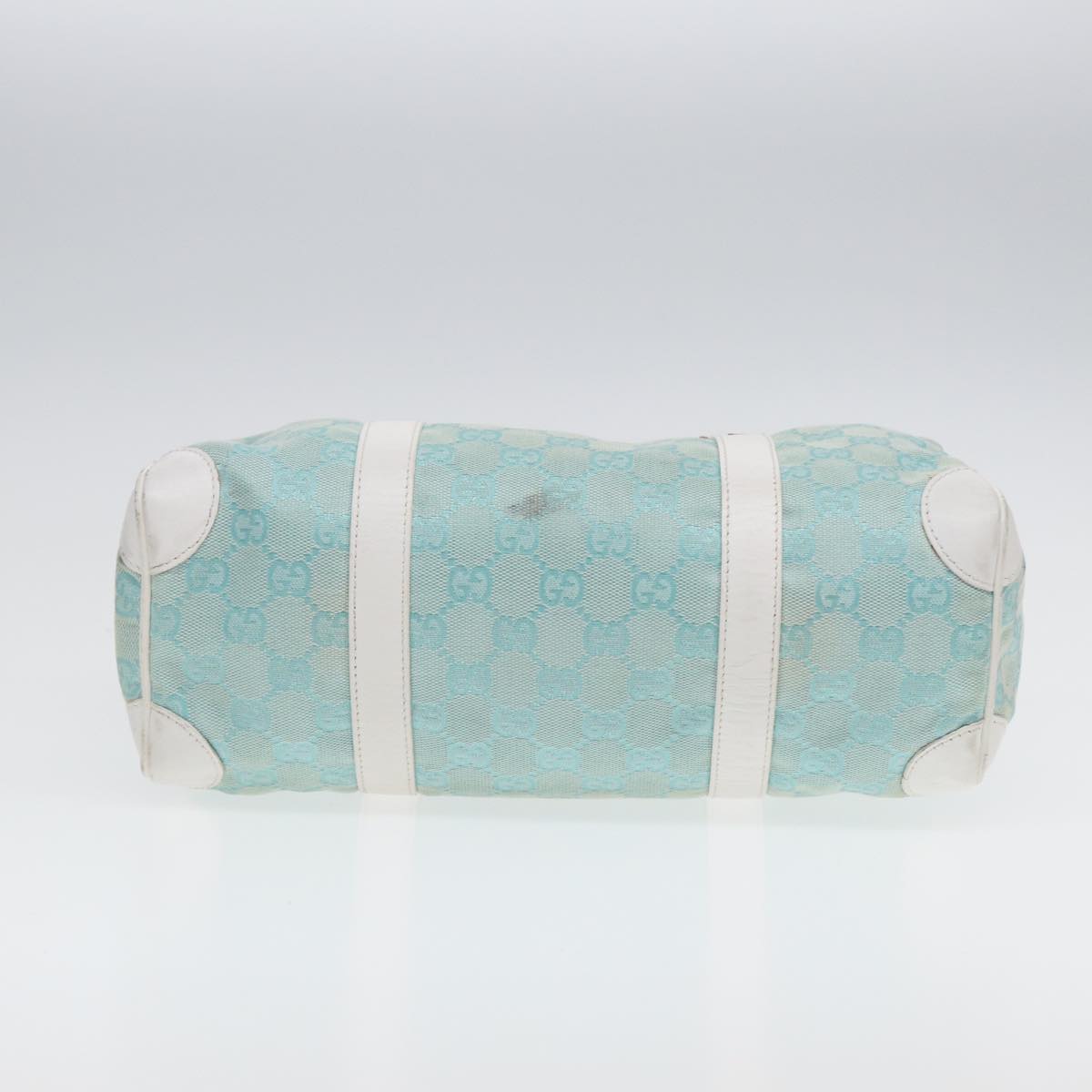 This GUCCI handbag features a chic blue and white GG canvas design, offering a classic and sophisticated look. It provides a practical size for daily use.