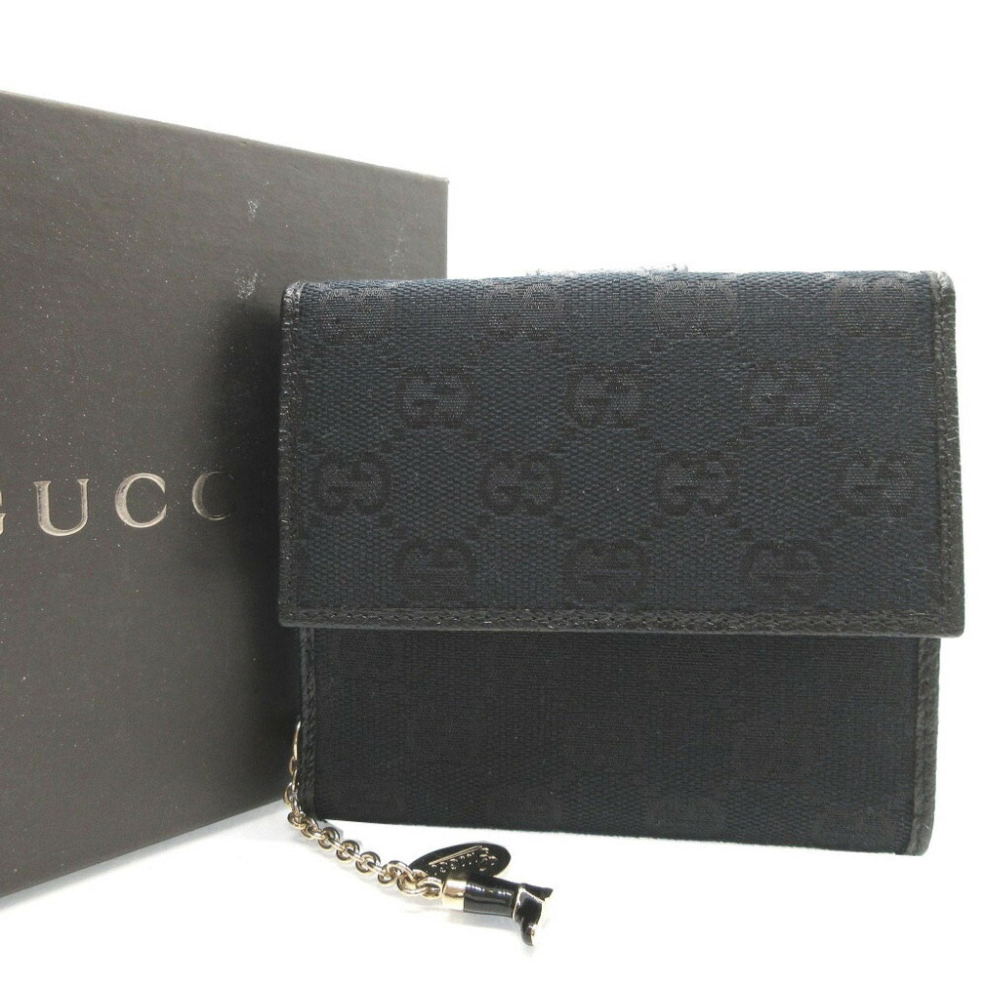 Presenting Gucci's GG Canvas Wallet, a versatile bi-fold accessory designed for both men and women. Made from GG canvas and leather in a classic black color, this wallet combines style and functionality for a timeless and sophisticated look.