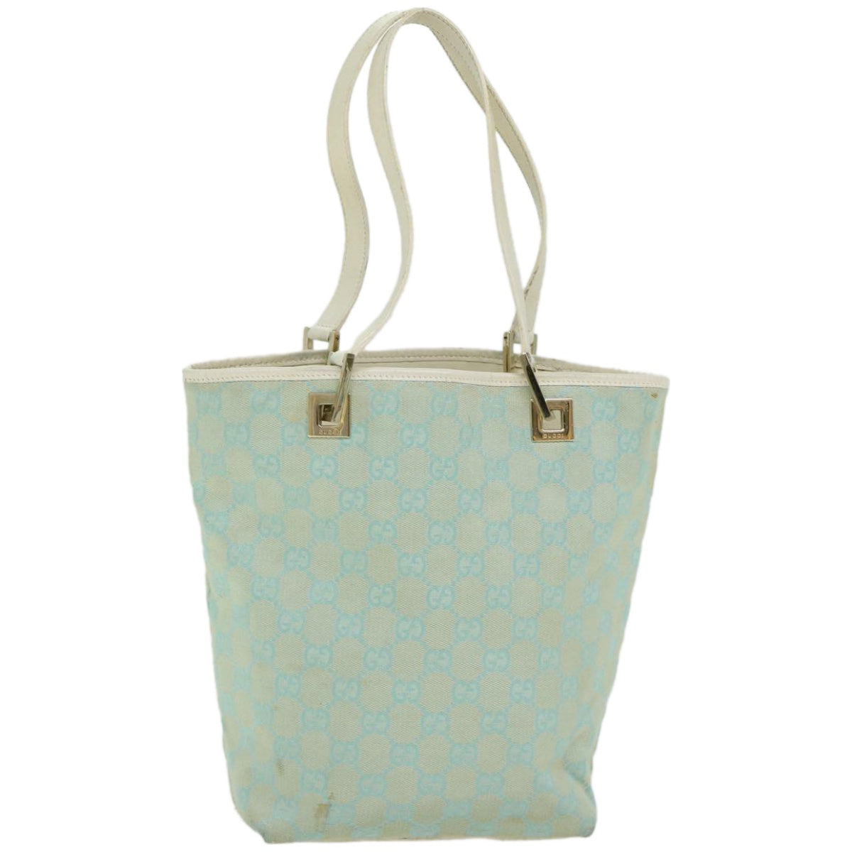 Introducing Gucci's Hand Bag in a refreshing light blue and white palette, crafted from a combination of canvas and GG canvas for an iconic touch. This exquisite handbag epitomizes the brand's fusion of timeless elegance and contemporary style. The light blue hue imbues a sense of tranquility and sophistication, while the classic GG canvas detailing adds a signature Gucci charm. With its versatile design and spacious interior, this handbag effortlessly transitions from day to night, making it an essential accessory for the modern woman. Whether carried by its top handles or worn over the shoulder with the detachable strap, it exudes effortless chic and elevates any ensemble.