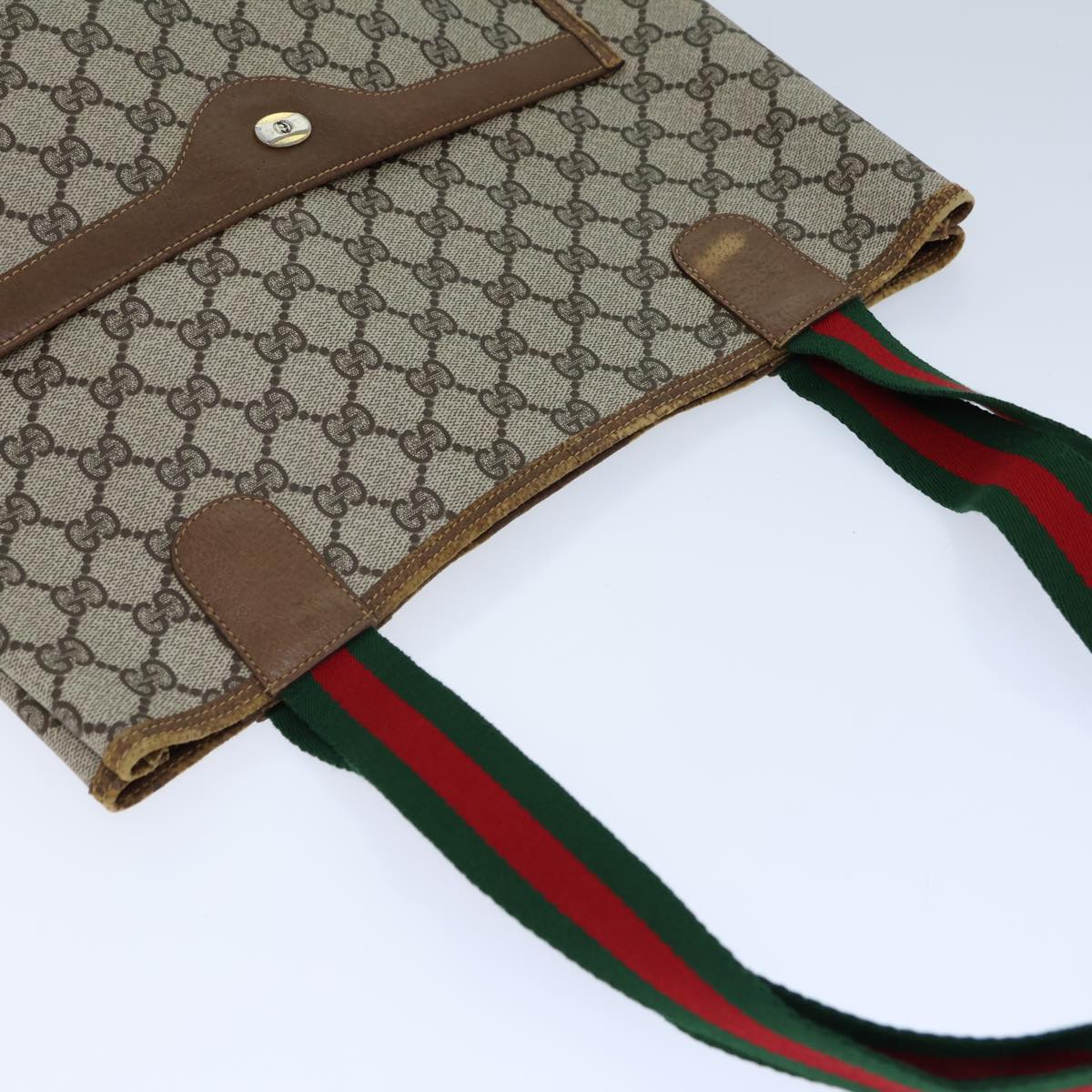 This Gucci GG Canvas Sherry Line tote bag is a stylish accessory designed for everyday use. Crafted from PVC leather and GG canvas in a sophisticated beige and red color combination, it features a spacious interior with a secure magnetic closure and sturdy handles. The silver-toned hardware adds a touch of elegance, while the fabric lining ensures durability.