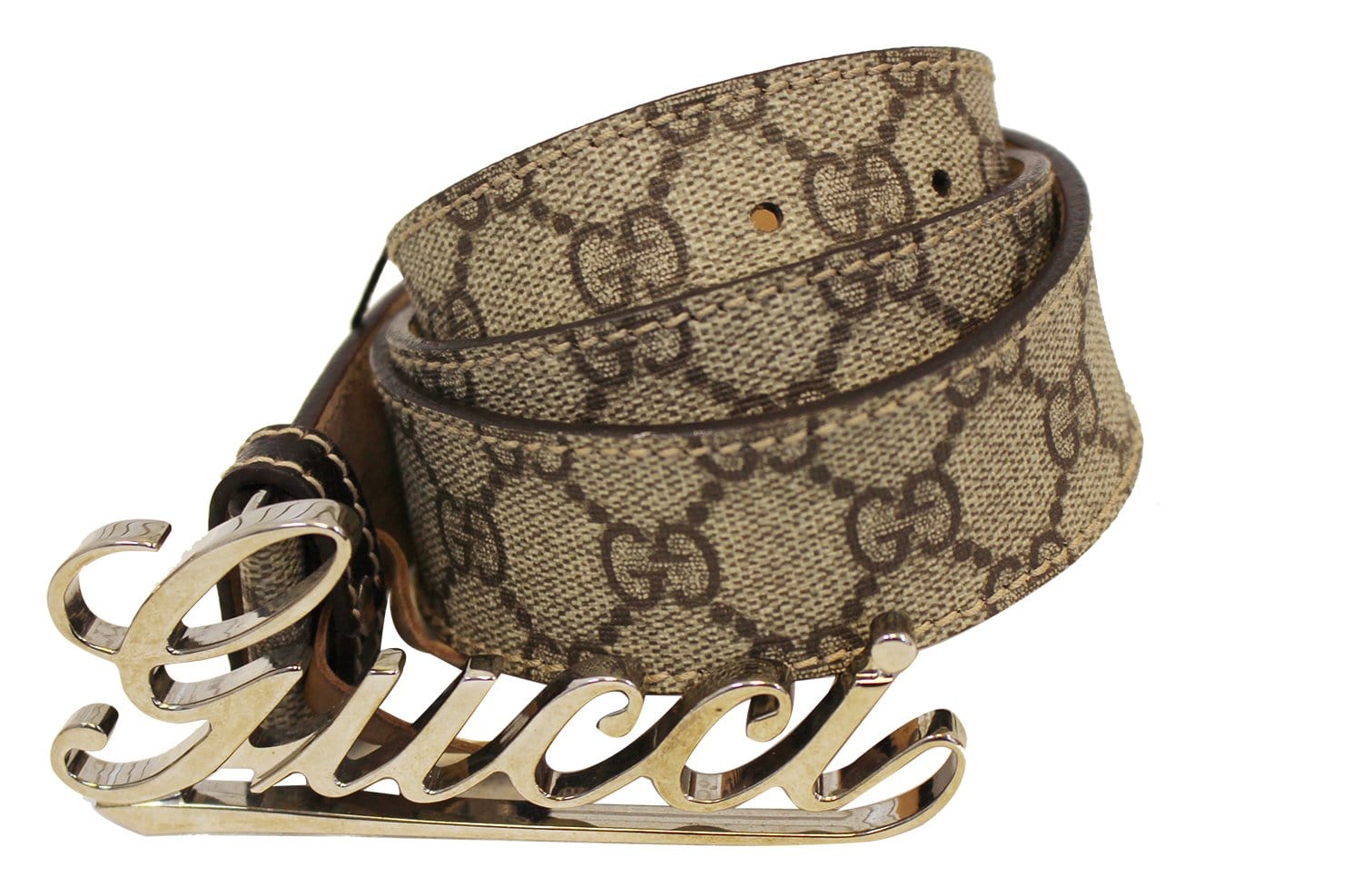 Gucci GG Canvas Beige Script Buckle Belt Size 85/34