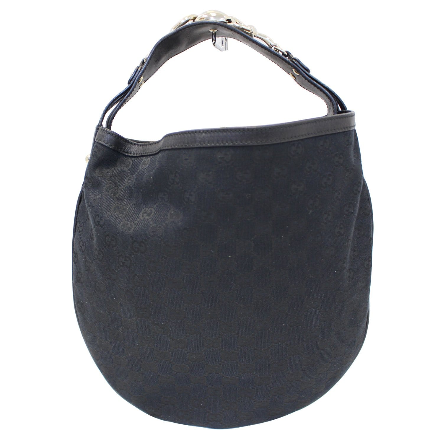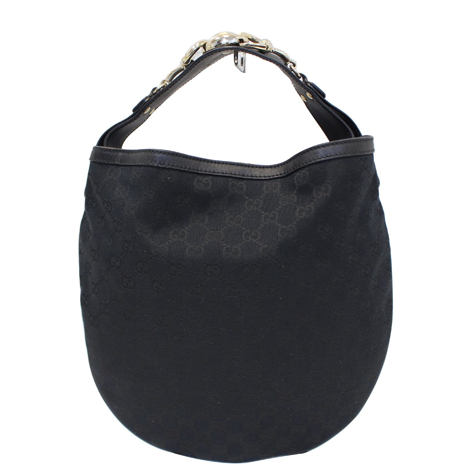 GUCCI GG Canvas Horsebit Medium Wave Hobo Bag Black