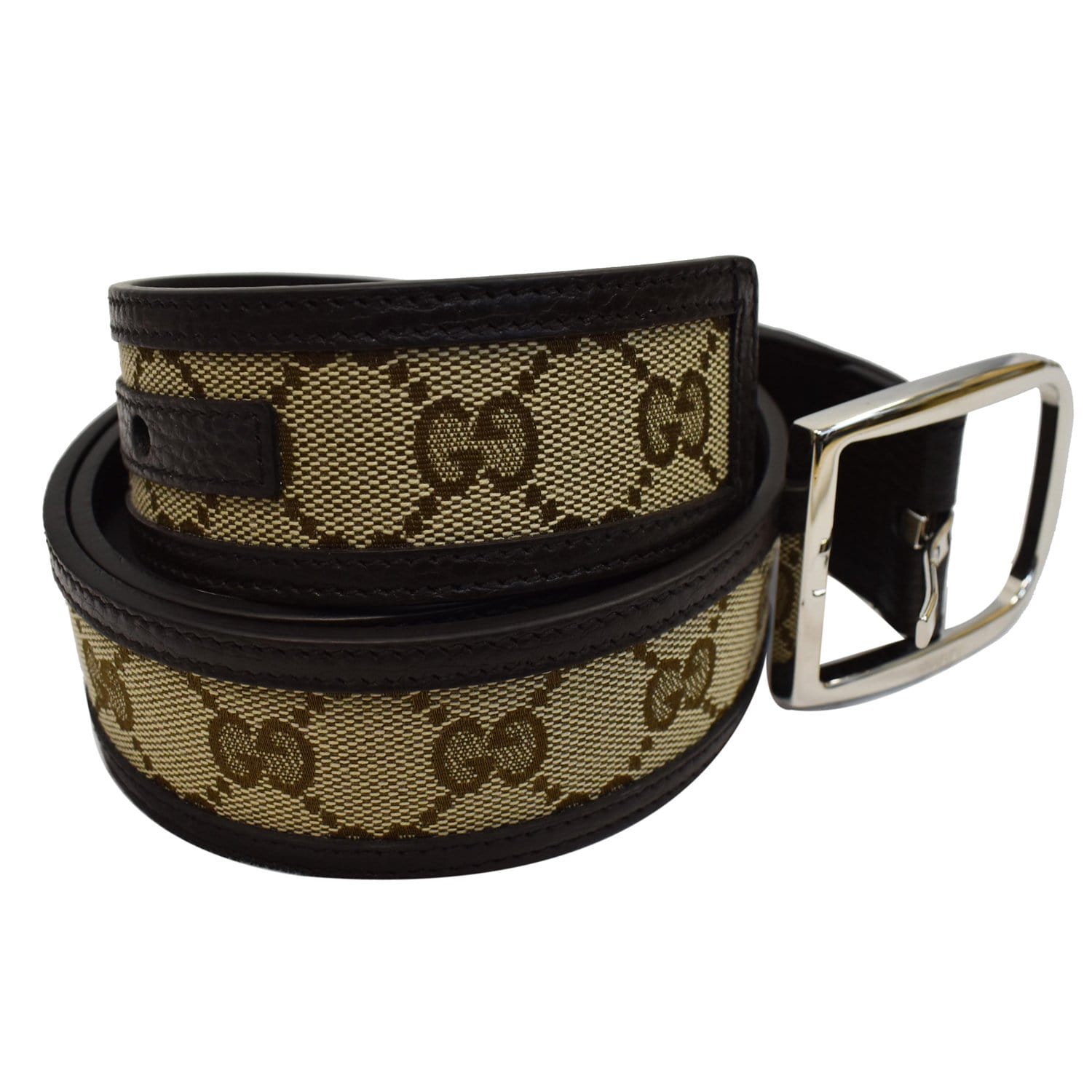Gucci GG Canvas Leather Belt Beige Size 90/36
