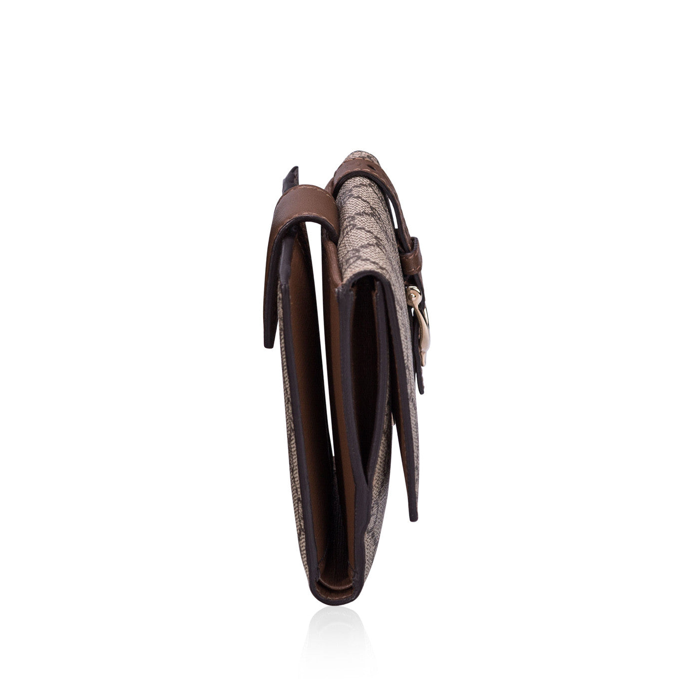 This Gucci canvas wallet features the iconic GG canvas that the brand has used for several collections. This is a convenient and easy press stud, single compartment wallet with a belt buckle feature and gold tone hardware. Slip this into your favourite Gucci canvas handbag for the perfect pairing.