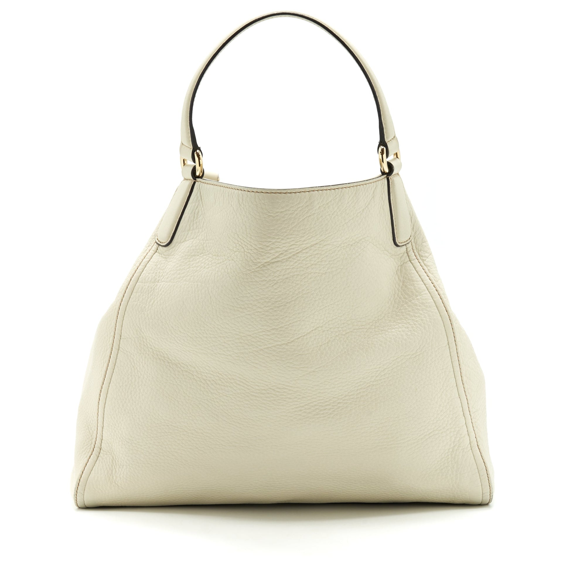 (This item is in fair condition with rubbing on corners, creasing on leather, scratches on hardware, sign of use inside.)