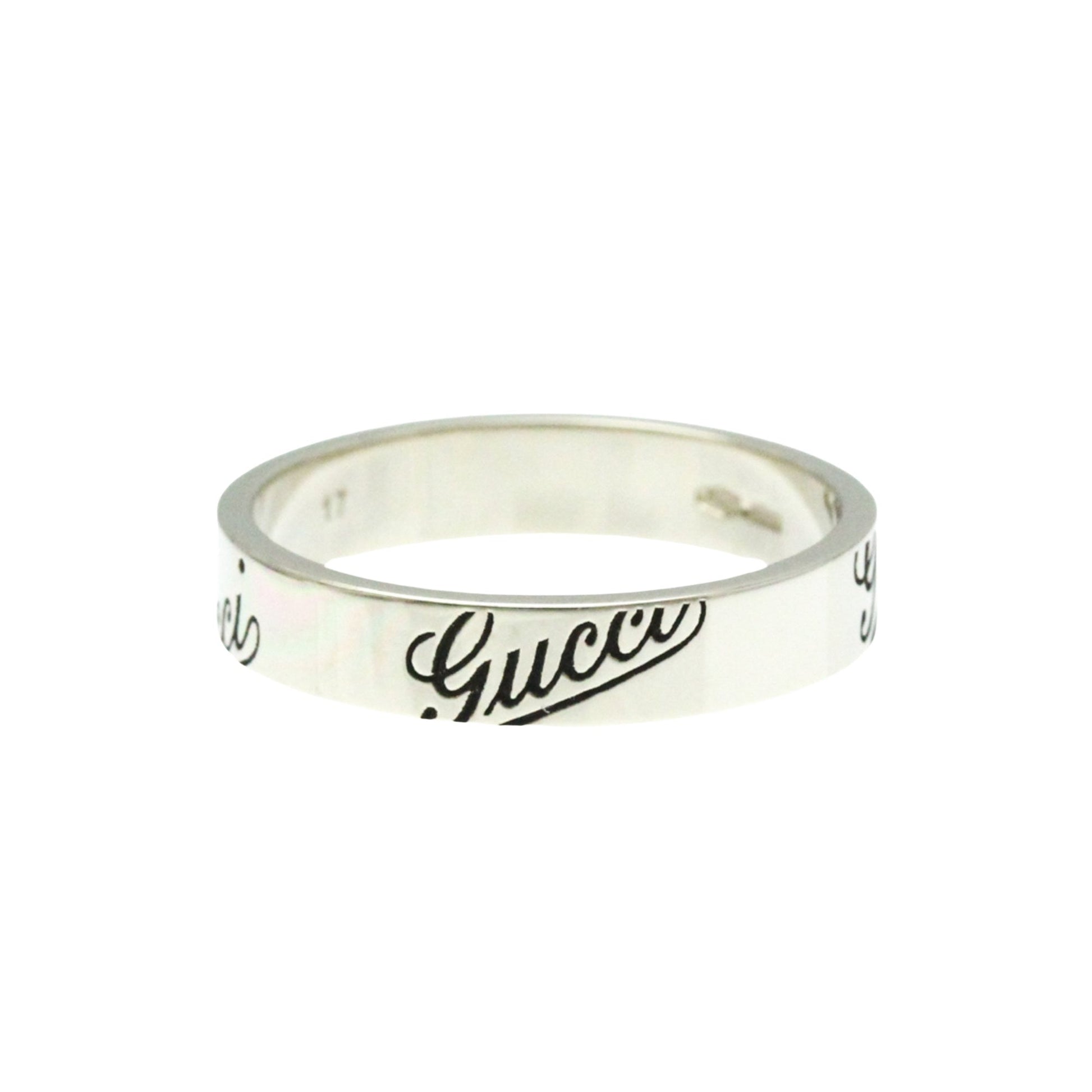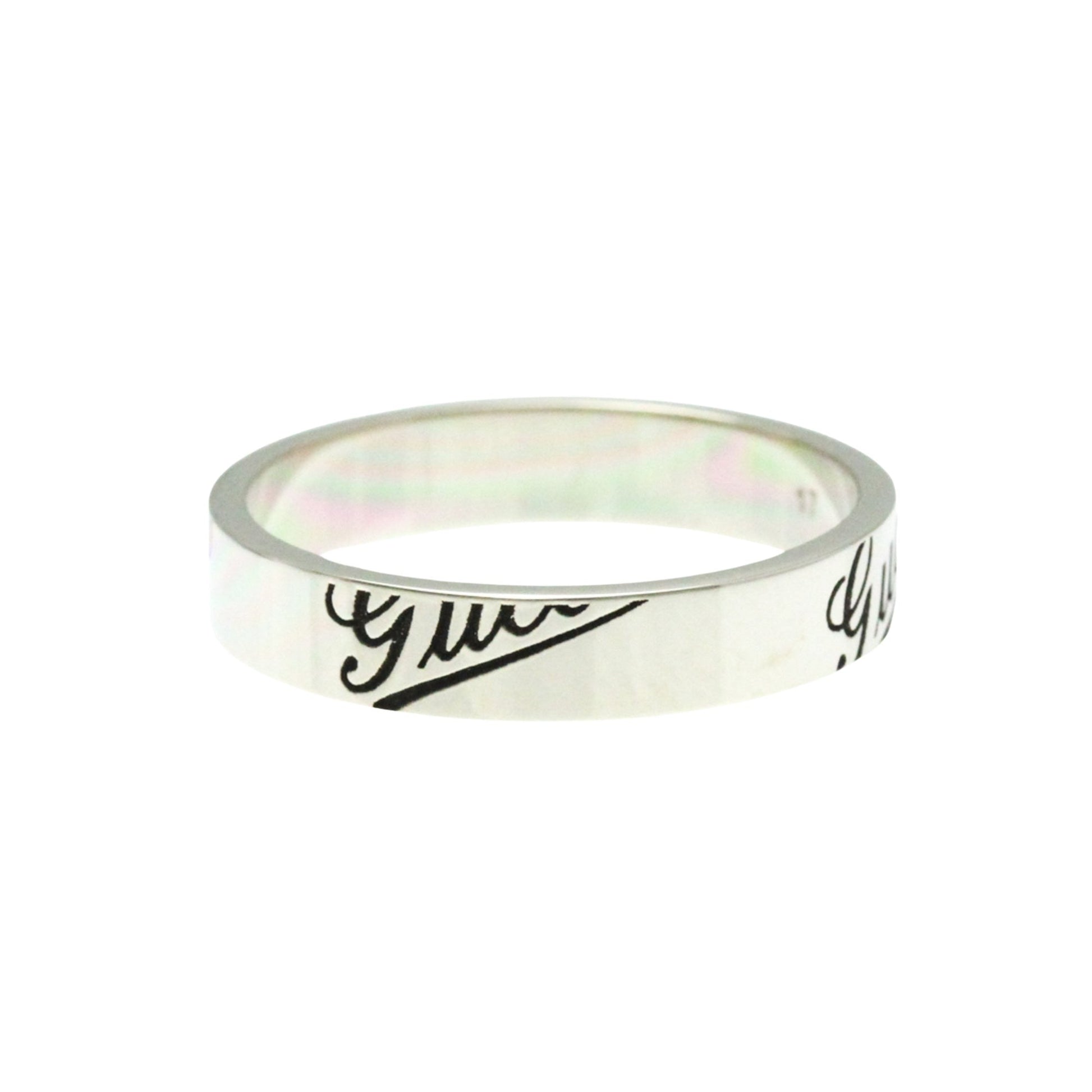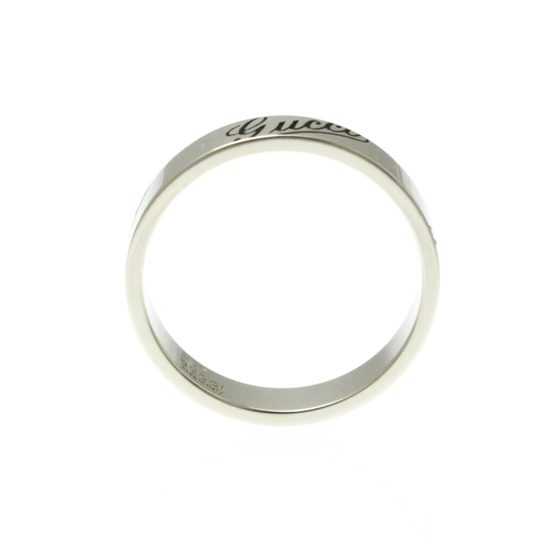 Introducing the Gucci Logo Print Band Ring, a sleek and stylish accessory that exudes contemporary elegance. Crafted from luxurious white gold (18K), this ring showcases Gucci's iconic logo print, making it a statement piece for both men and women. Its minimalist design and silver color add a touch of sophistication to any ensemble, making it the perfect addition to your fashion repertoire.