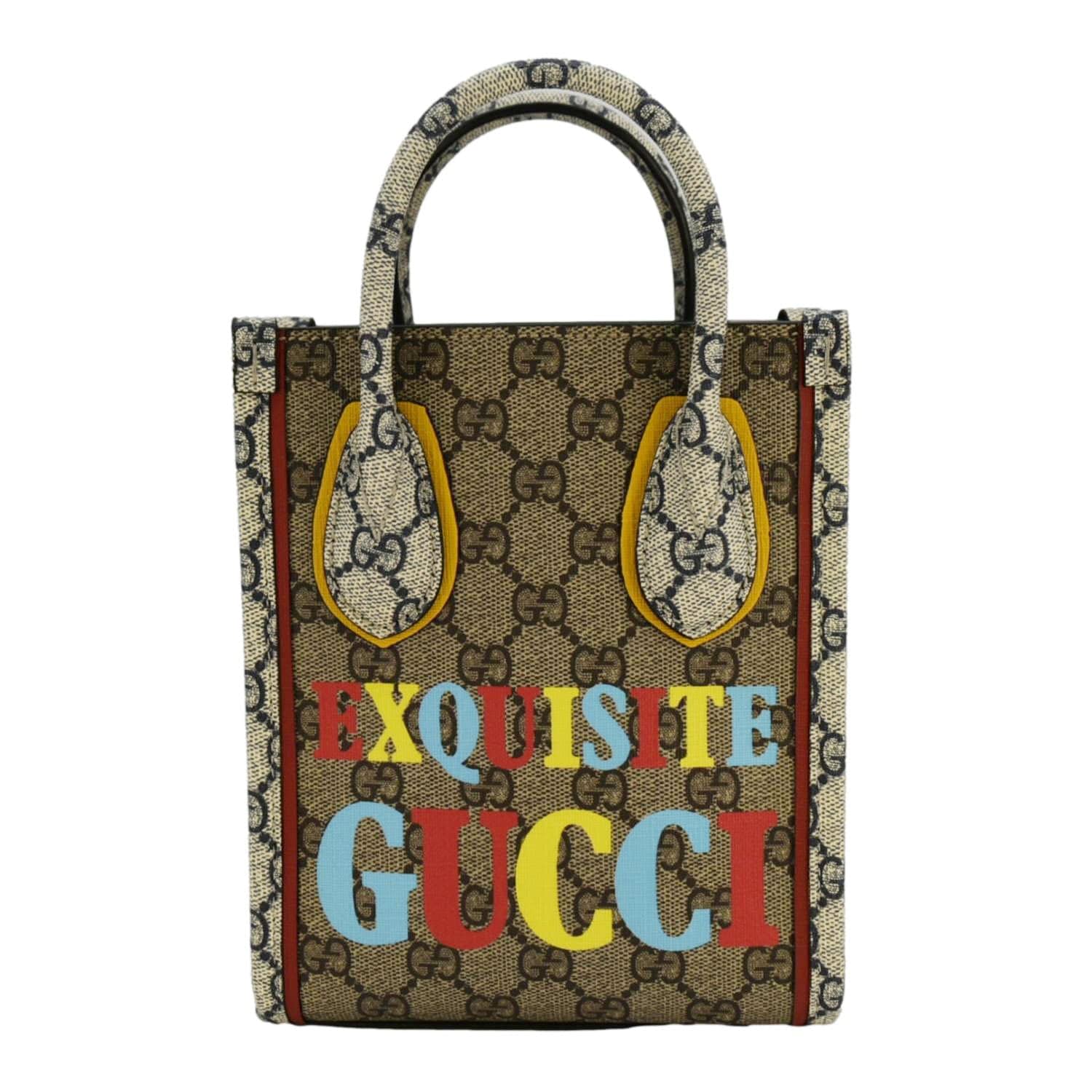 GUCCI Exquisite Mini GG Supreme Canvas Vertical Tote Shoulder Bag Beige