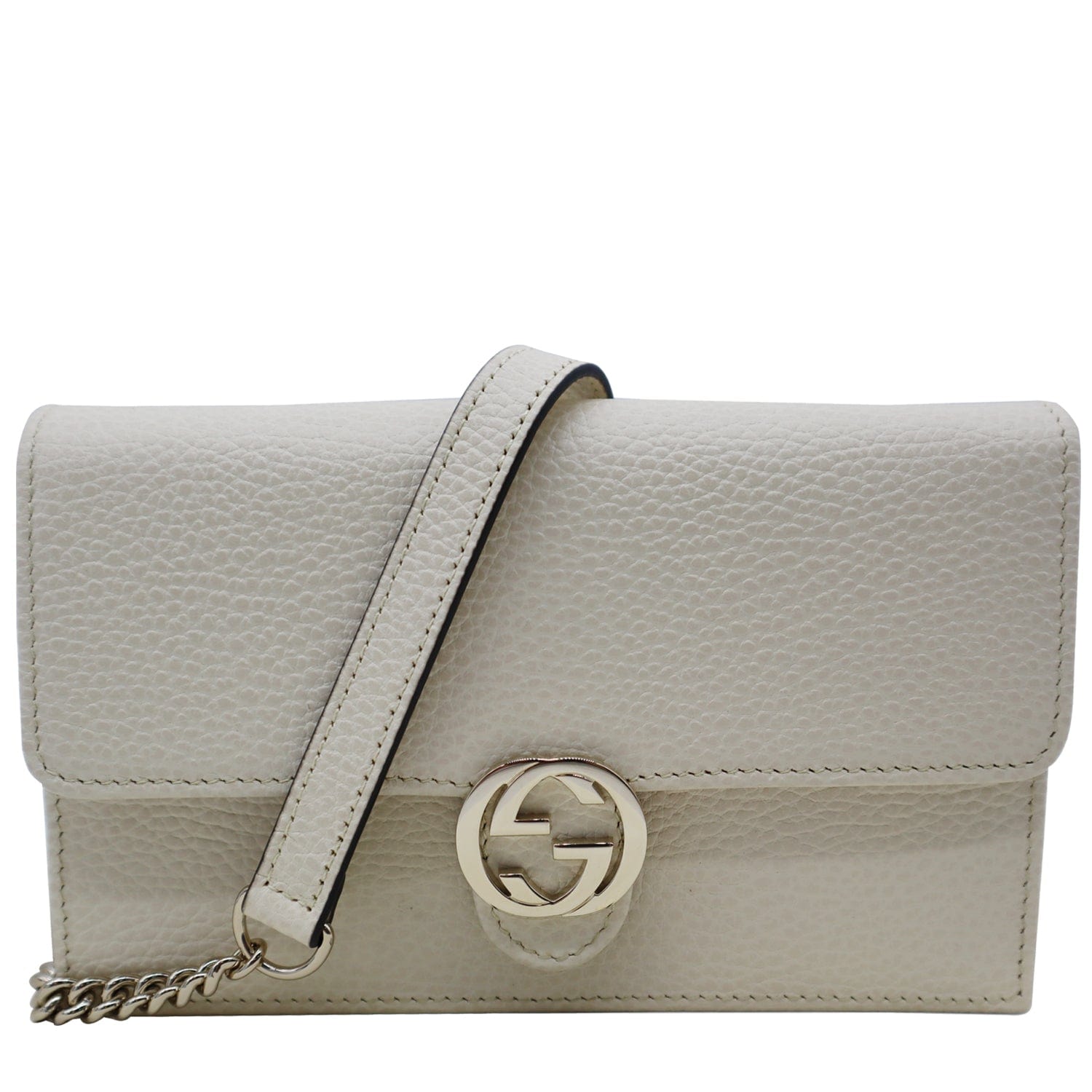 GUCCI GG Interlocking Pebbled Leather Crossbody Bag White 615523