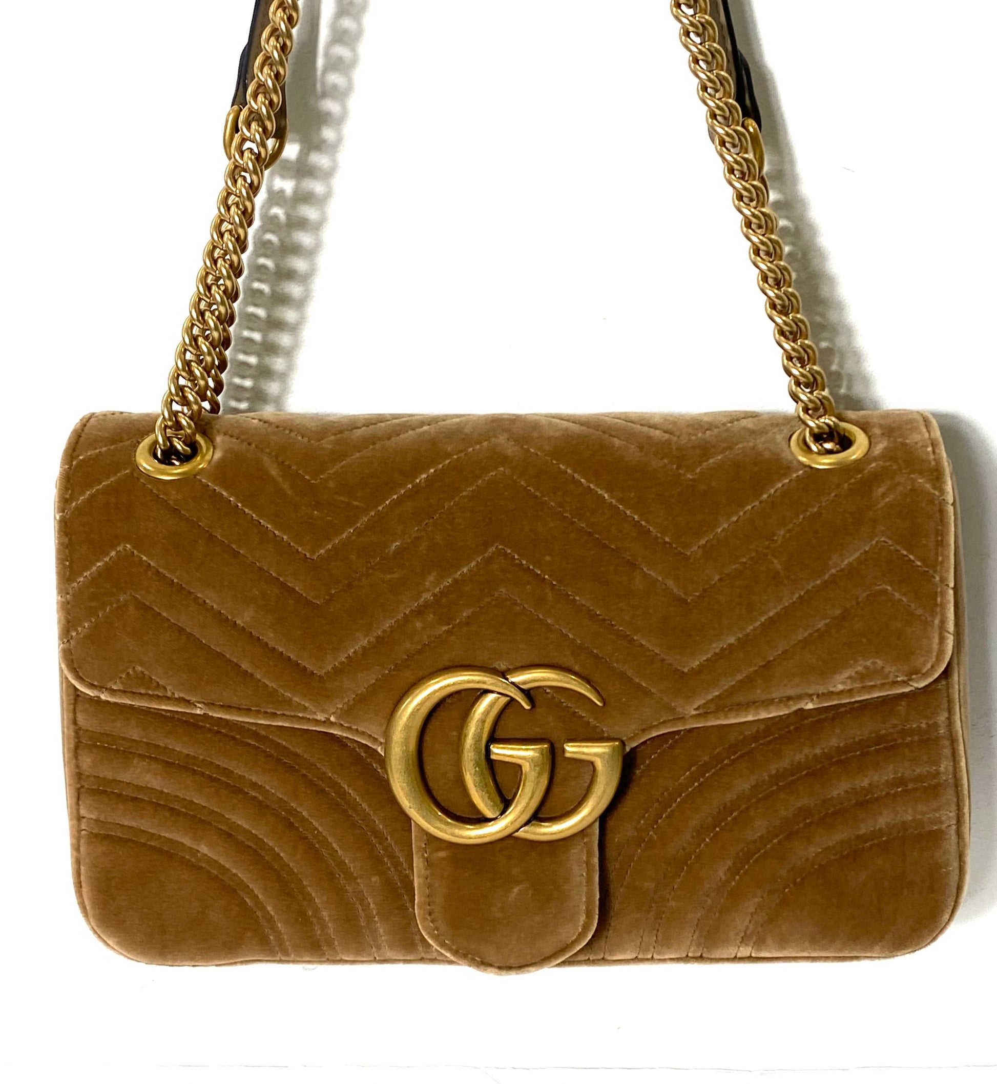 Aged gold-tone GG logo and hardware
