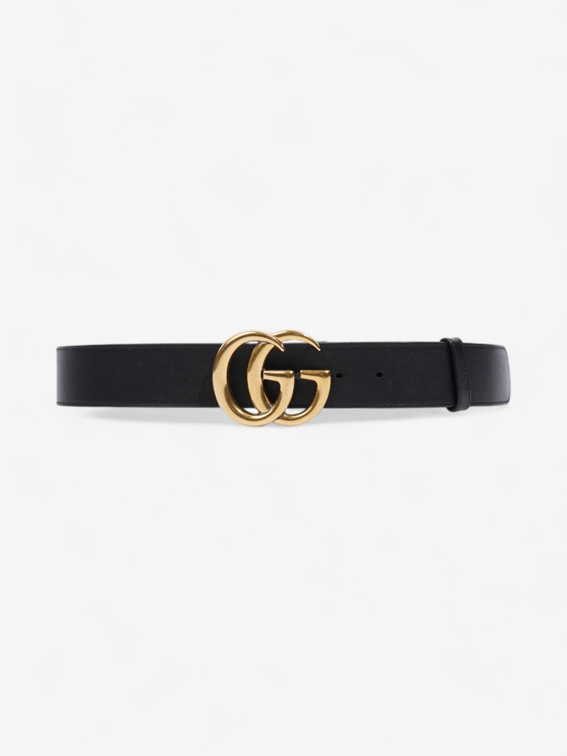 Gucci GG Marmont 2015 Re-Edition Wide Belt Black / Gold Leather 85cm / 34"